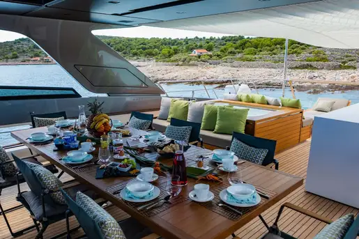 Wake to the gentle lull of the sea and indulge in a sun-kissed breakfast on the bow, flybridge, or aft deck, each offering a unique ambiance with uninterrupted views of the Adriatic horizon. Later, lounge on the plush sunbeds or find a tranquil moment on the private balcony—every inch of NOOR II is designed to let you revel in life's finer moments.