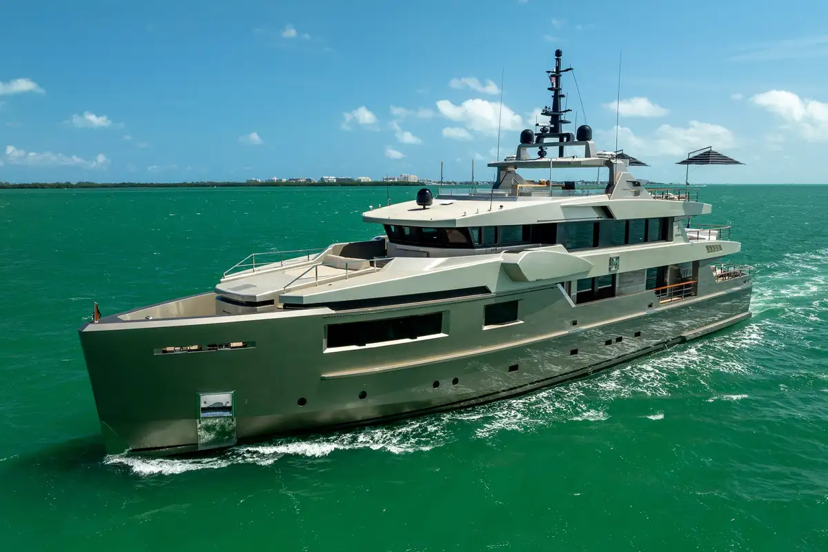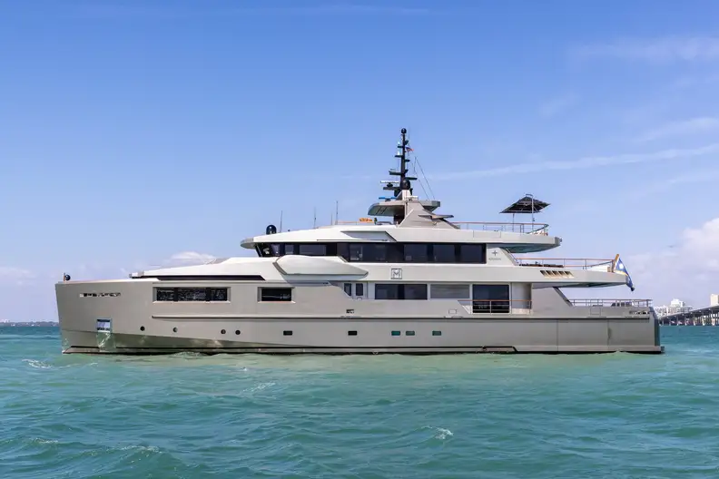 Constructed with an aluminum hull and superstructure, MAVERICK features a semi-displacement hull that ensures exceptional seakeeping and impressive speeds. Powered by twin MTU engines, she cruises comfortably at 14 knots, reaching a maximum speed of 20 knots and a range of up to 4,950 nautical miles at economical speed. With a shallow draught of just 2.55m (8.3ft), MAVERICK can anchor close to picturesque coves and sheltered bays, and her at-anchor stabilizers provide an exceptionally smooth experience.