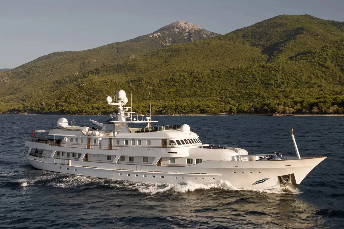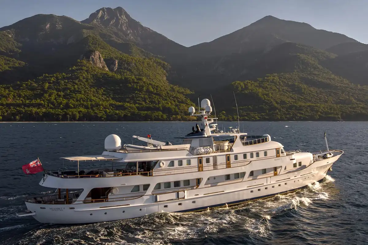 The 57.2m (187.7ft) motor yacht MESERETT II has a steel hull and aluminium superstructure constructed to Lloyd’s classification and MCA compliance by the Dutch shipyard Cammenga Jachtbouw.