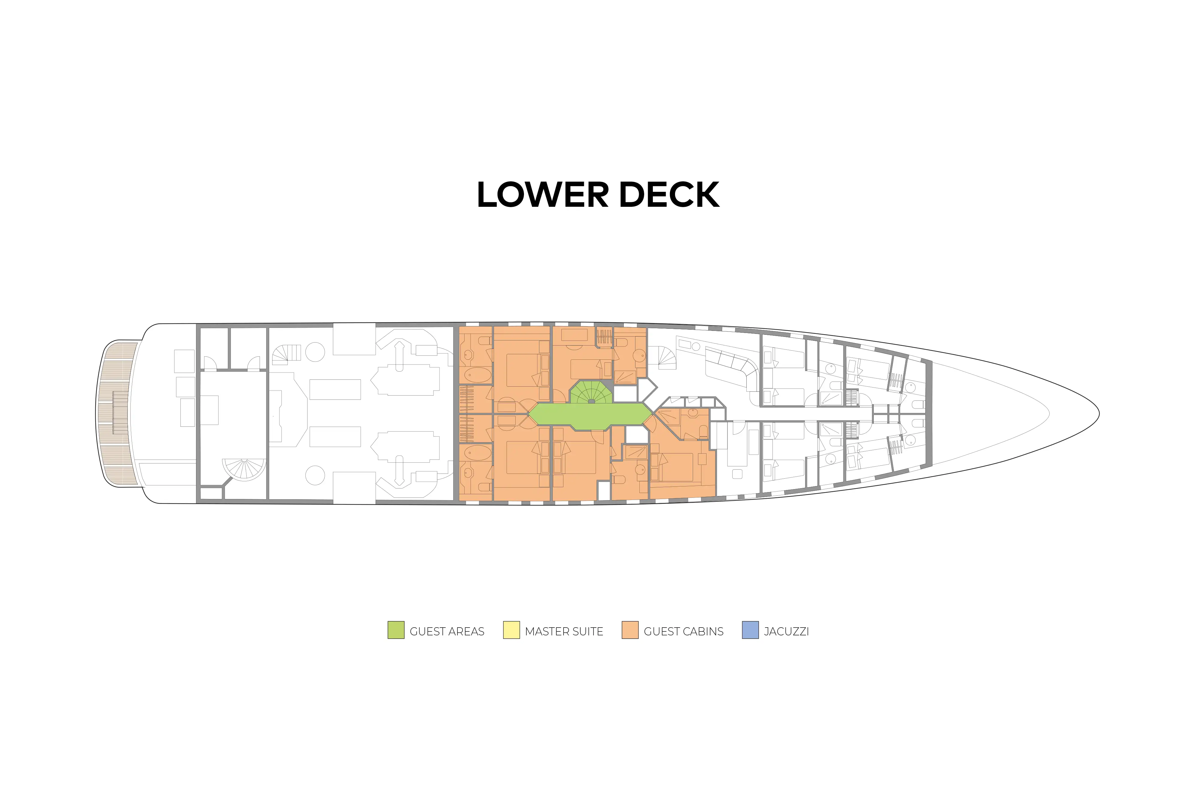 - Accommodates up to 10 guests in six luxurious cabins, including a master suite on the main deck
