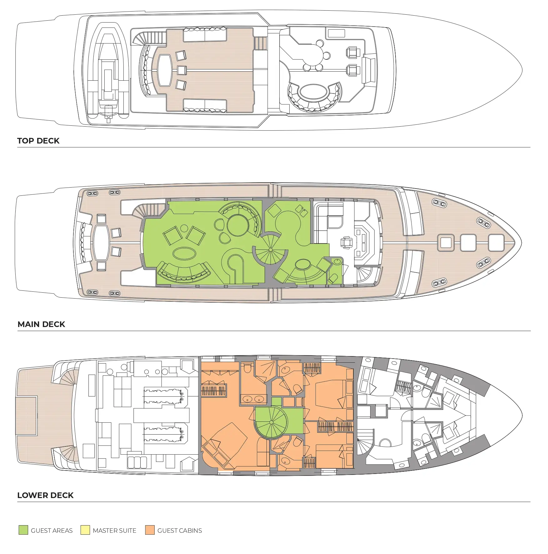 - Split level flybridge with bar and dining area