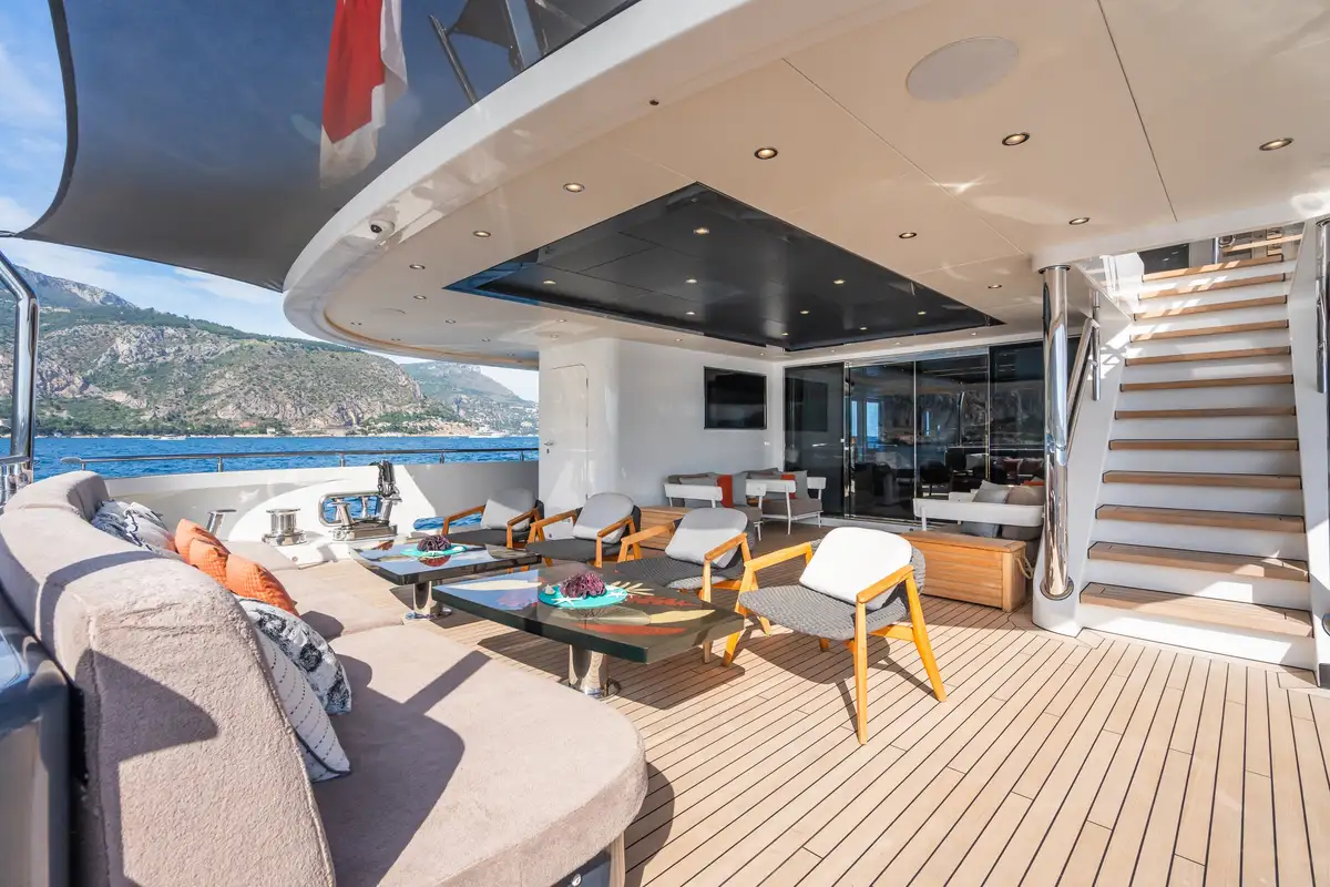 Aboard, STARBURST III every space invites exceptional relaxation and entertainment. Guests can unwind in two jacuzzis — one with a glass bottom on the sun deck offering incredible views and another perfectly positioned on the foredeck. A well-equipped gymnasium in the beach club caters to your fitness needs, while the opulent master suite complete with a fold-down sea balcony provides a private and tranquil sanctuary. The yacht’s interior and exterior spaces are perfectly balanced, offering a seamless blend of unparalleled luxury and comfort.