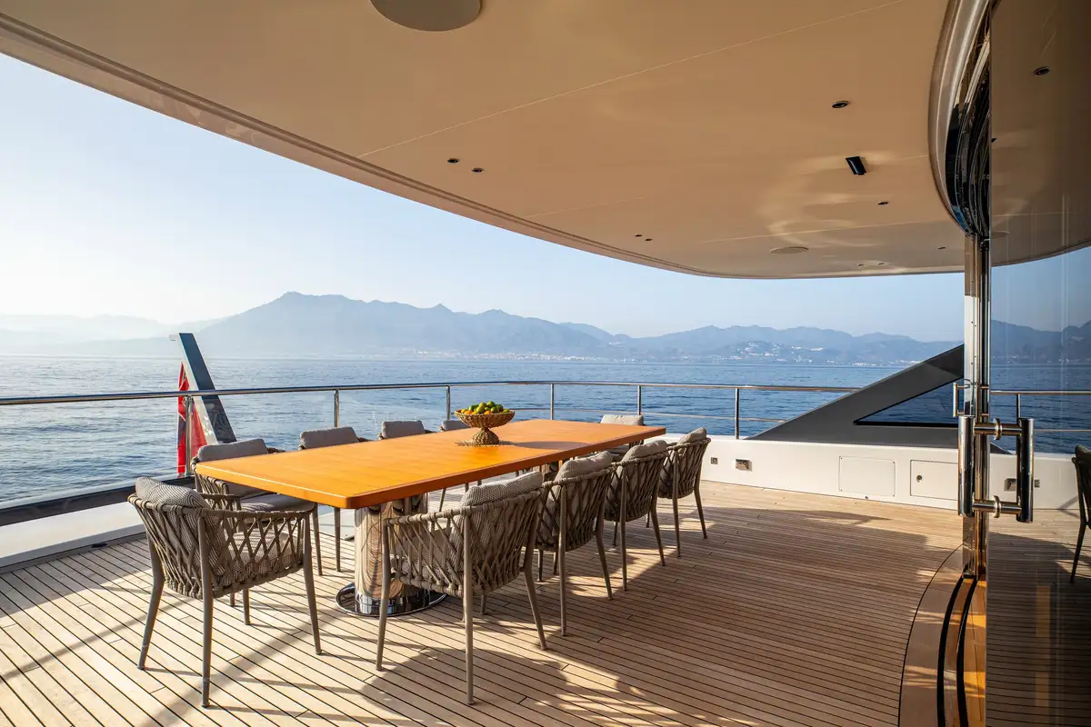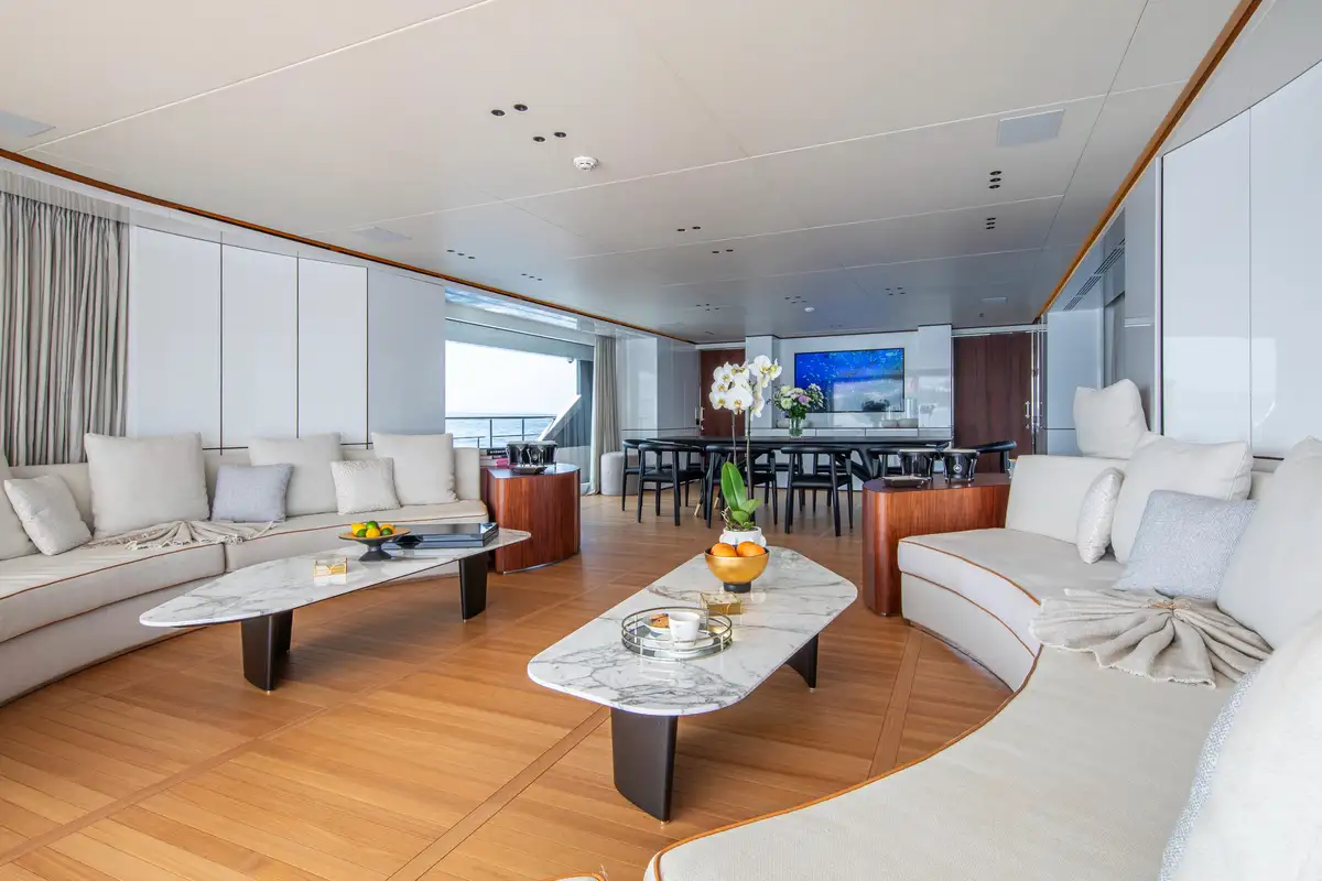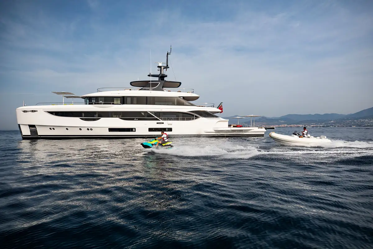 The 40.8m (133.8ft) TOSUN, delivered in 2022 by Italian shipyard Benetti, offers effortless connection with the sea for the epitome of easy-going luxury. Her standout space is undoubtedly the lower deck beach club with its infinity pool and fold-down balcony terraces which create a huge space for relaxing or entertaining. There are toys aplenty to suit every guest, while a hydraulic bathing platform makes the water safely accessible for all.
