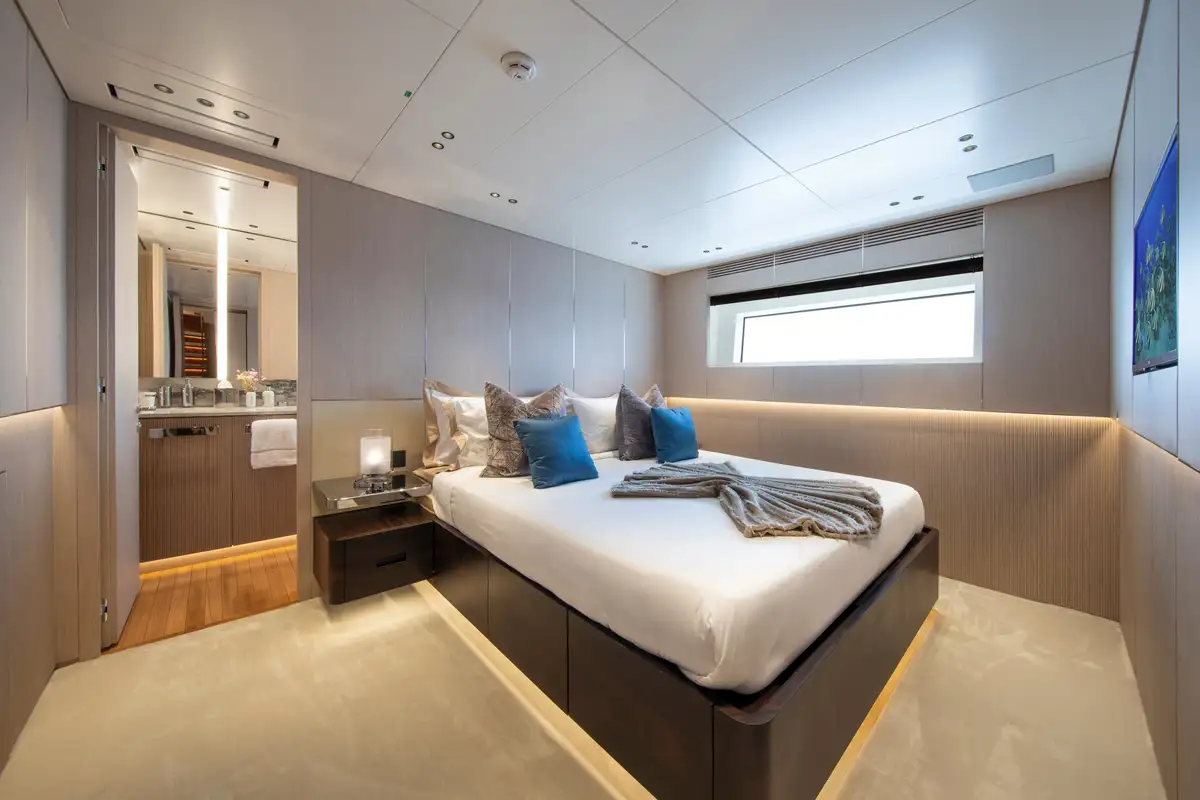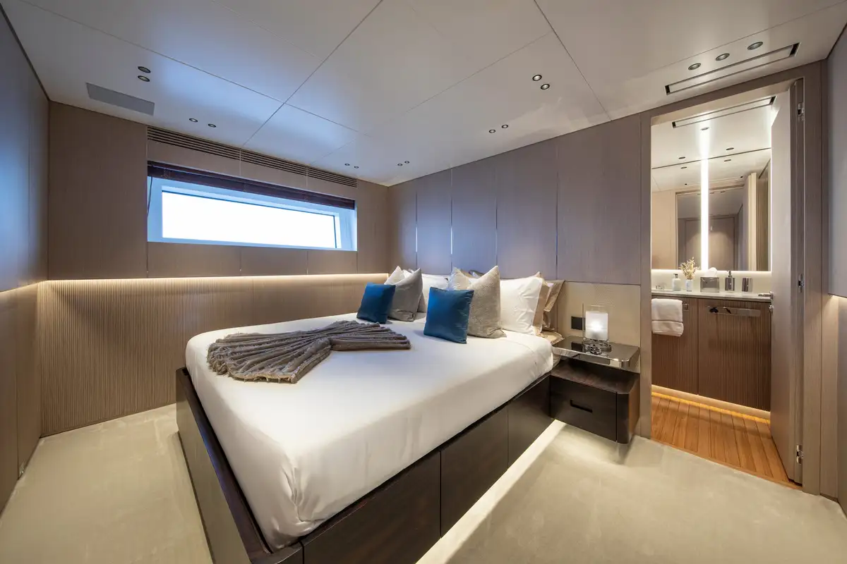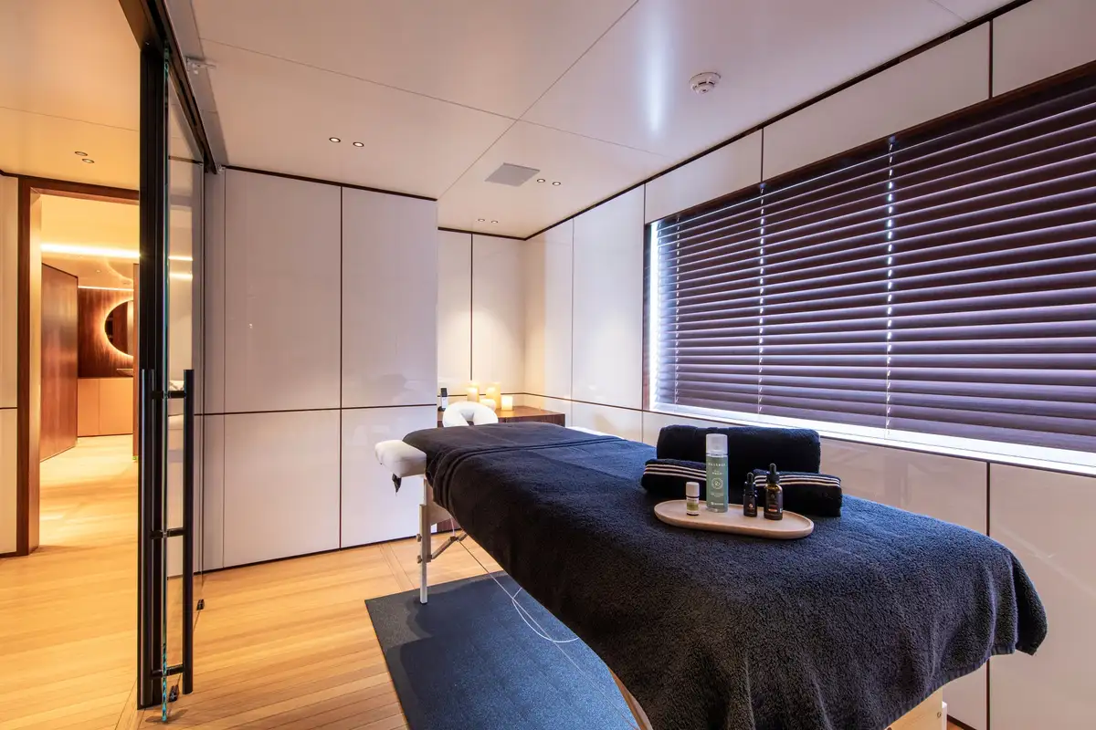 TOSUN accommodates 11 guests in five spacious cabins, including a full-beam owner’s suite located on the main deck. Two VIP cabins can be found on the lower deck along with a guest twin and guest double cabin. A particular highlight on board for guests is the wellness/massage room, making an already relaxing experience even more so.