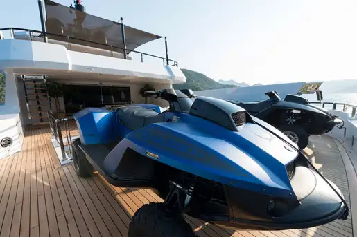 The motor yacht AQUARIUS has a great selection of watertoys and tenders to cater to all of your needs. A 7.2m (23ft) Axopar 22 Spyder chase boat is on hand to ferry you to a nearby underwater cove, go on a waterskiiing excursion, or simple enjoy a day out on the water. Alongside the smaller Extender tender on board, there's SUPs, an eFoil, and snorkelling equipment so you can explore the places you visit at a leisurely pace. AQUARIUS is also fitted with stabilisers to ensure you don’t experience a rolling motion when she is anchored in a bay.