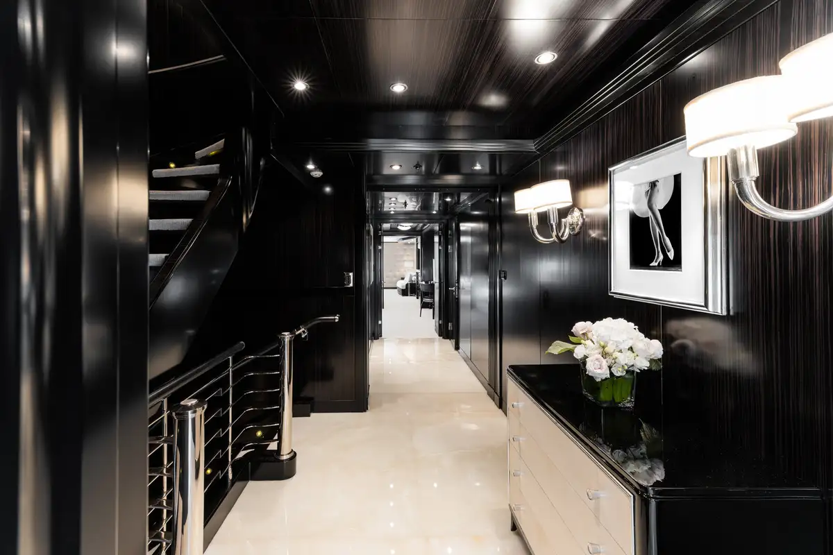 Accommodation is flexible for 12 guests in six beautifully appointed cabins. The full-beam owner’s cabin is on the main deck and offers a large walk-in closet and a private study. The full-beam VIP cabin comes equipped with a bathroom with double shower and separate jacuzzi tub. There’s the option for there to be three full-beam guest cabins, in addition to one twin cabin with two single beds and one fold-out bed. All guest cabins have en suite facilities.