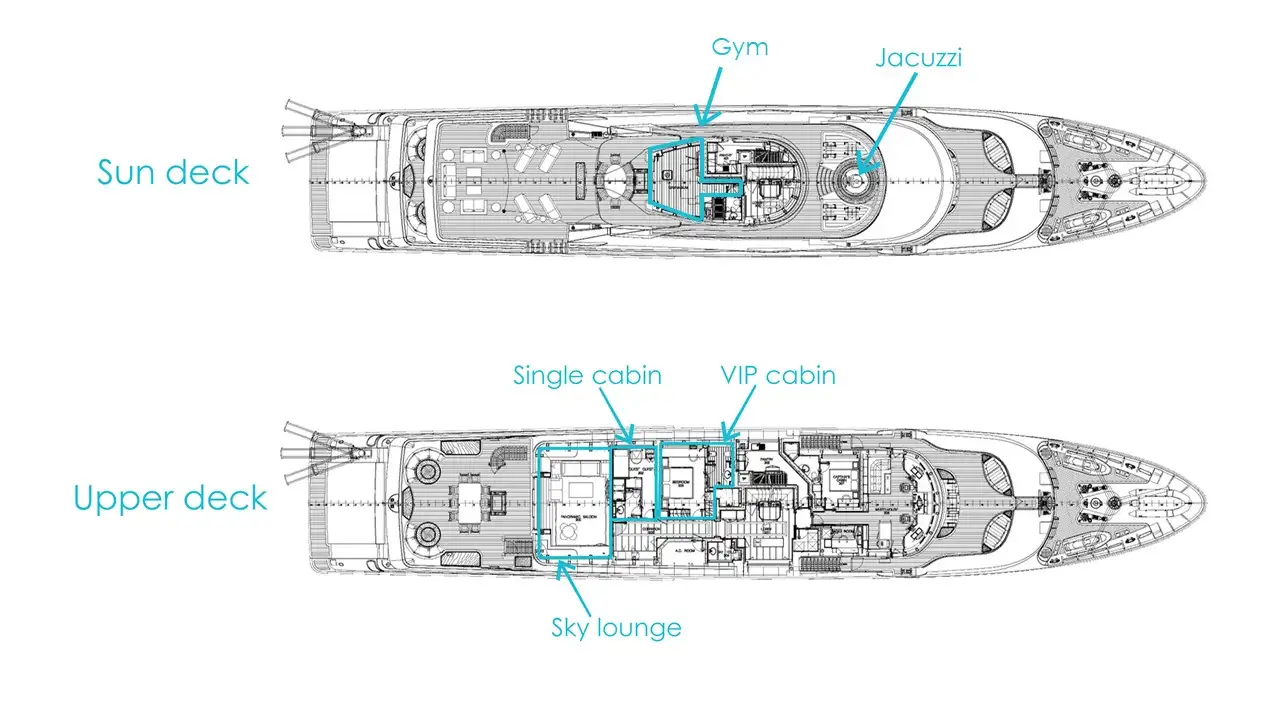 Standout features include a spacious beach club for easy access to the water, a sprawling sun deck with a jacuzzi and gym, and inviting lounge areas designed for relaxation and socializing. Whether unwinding on deck or exploring the Greek coastline, CLELIA III delivers an unforgettable charter experience.