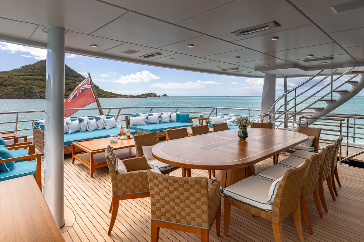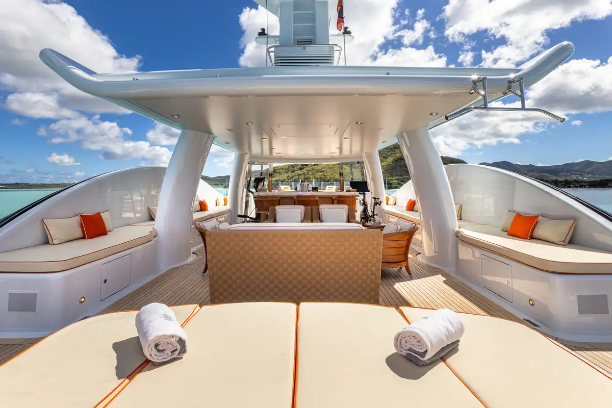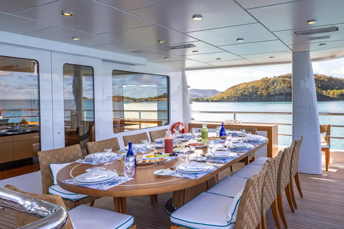 On the main deck aft, guests can enjoy relaxed seating and direct access to the water-level swim platform, perfect for enjoying the azure waters of the West Mediterranean or The Bahamas, while the upper deck aft presents an exquisite exterior dining area ideal for al fresco meals under the night sky.