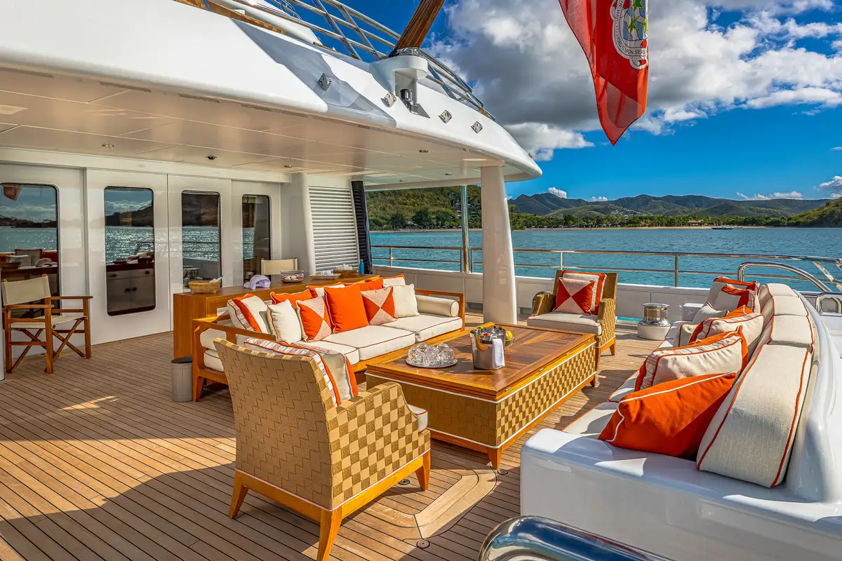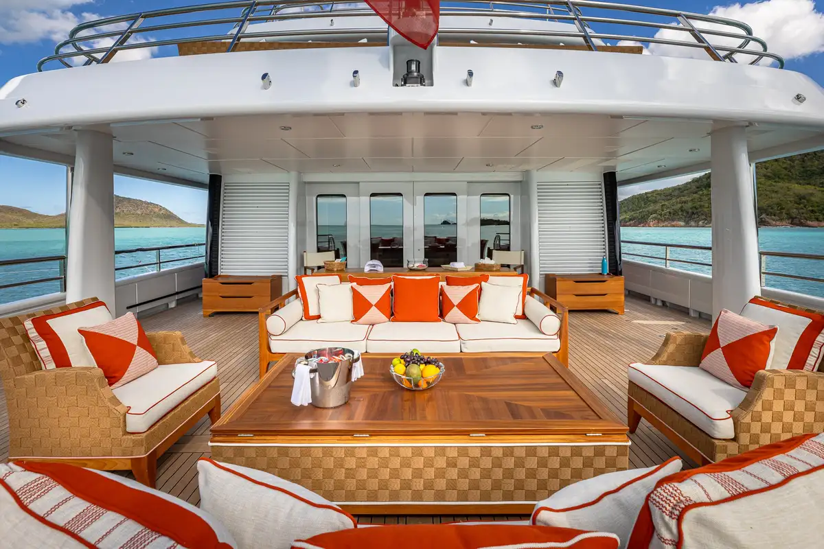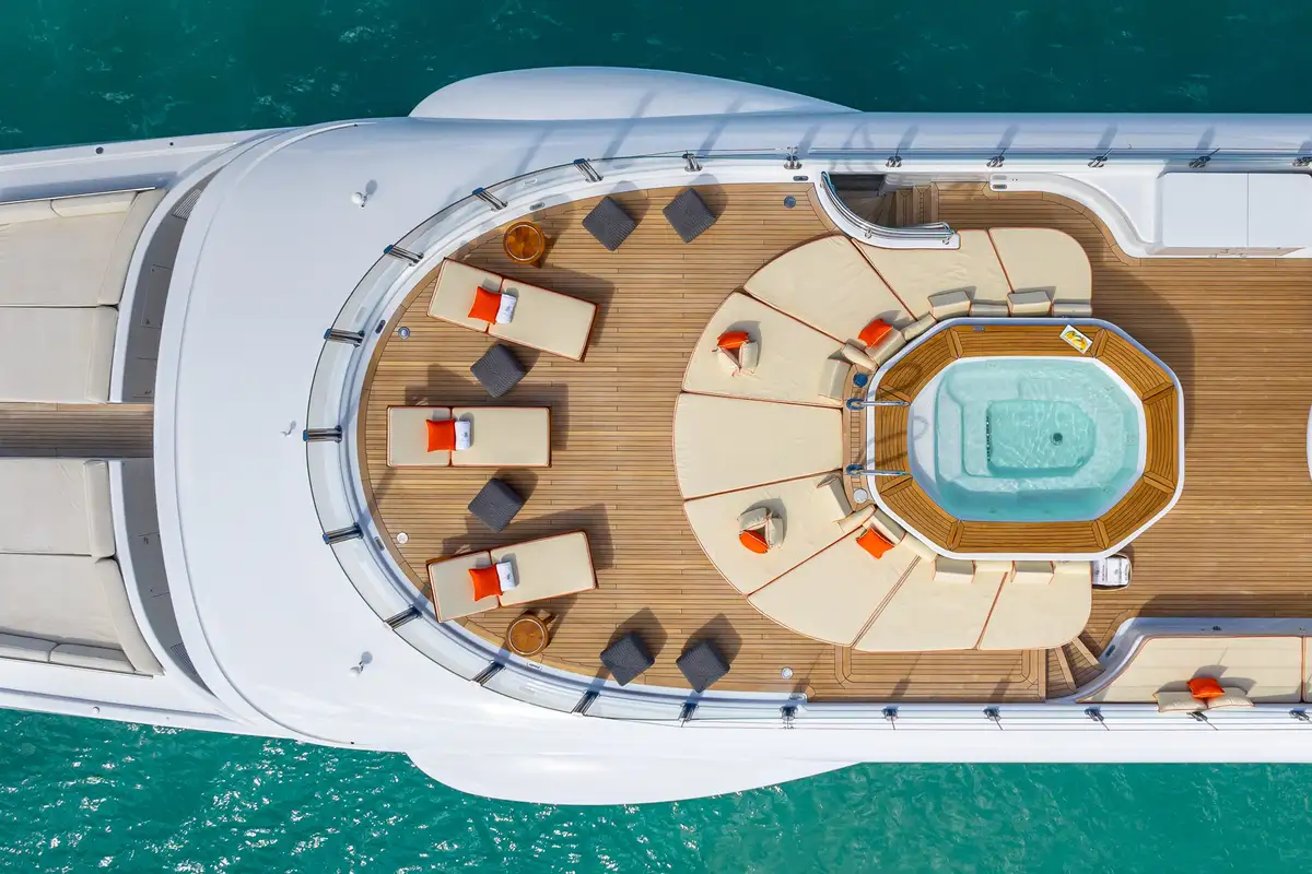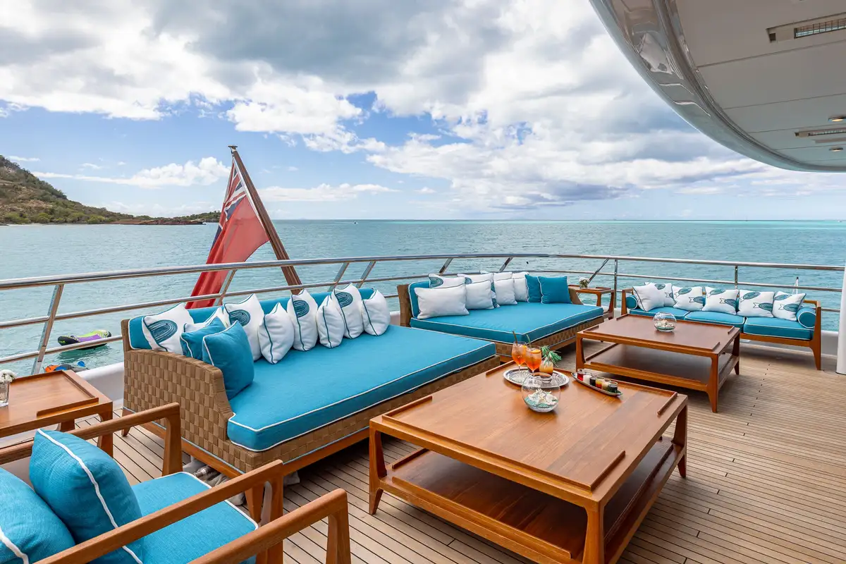 On the main deck aft, guests can enjoy relaxed seating and direct access to the water-level swim platform, perfect for enjoying the azure waters of the West Mediterranean or The Bahamas, while the upper deck aft presents an exquisite exterior dining area ideal for al fresco meals under the night sky.