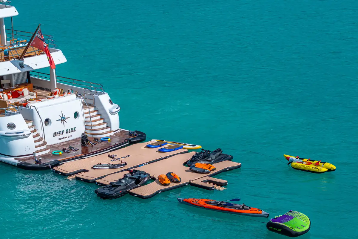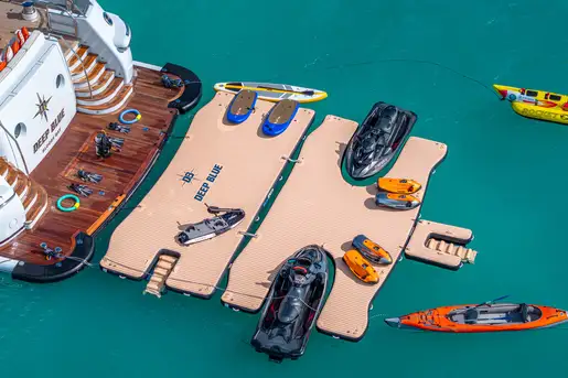 DEEP BLUE boasts an extensive selection of water toys, promising exhilarating activities for all ages. Combined with a vibrant and professional crew dedicated to providing an exceptional standard of service, plus a variety of comfortable on board spaces, a charter on DEEP BLUE offers a complete range of entertainment, from exhilarating activities to serene relaxation.