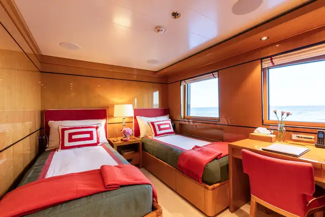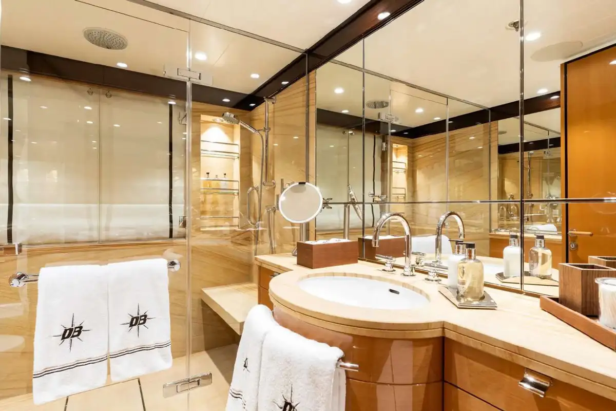 Following an extensive 2024 refit, the highly-acclaimed Amels 180 series yacht, DEEP BLUE, stands in impeccable condition ready to offer an exceptional charter holiday experience. This stunning superyacht seamlessly blends luxurious accommodation with an array of new amenities, promising unforgettable moments for up to 12 guests. DEEP BLUE’s considerately designed layout caters perfectly for families and groups. Six well-appointed cabins provide luxurious comfort, including a master suite and convertible double/twin cabin on the main deck. The lower deck features three double guest cabins and an additional twin cabin. The master suite is thoughtfully designed, featuring a private study and dressing room for more privacy and convenience.