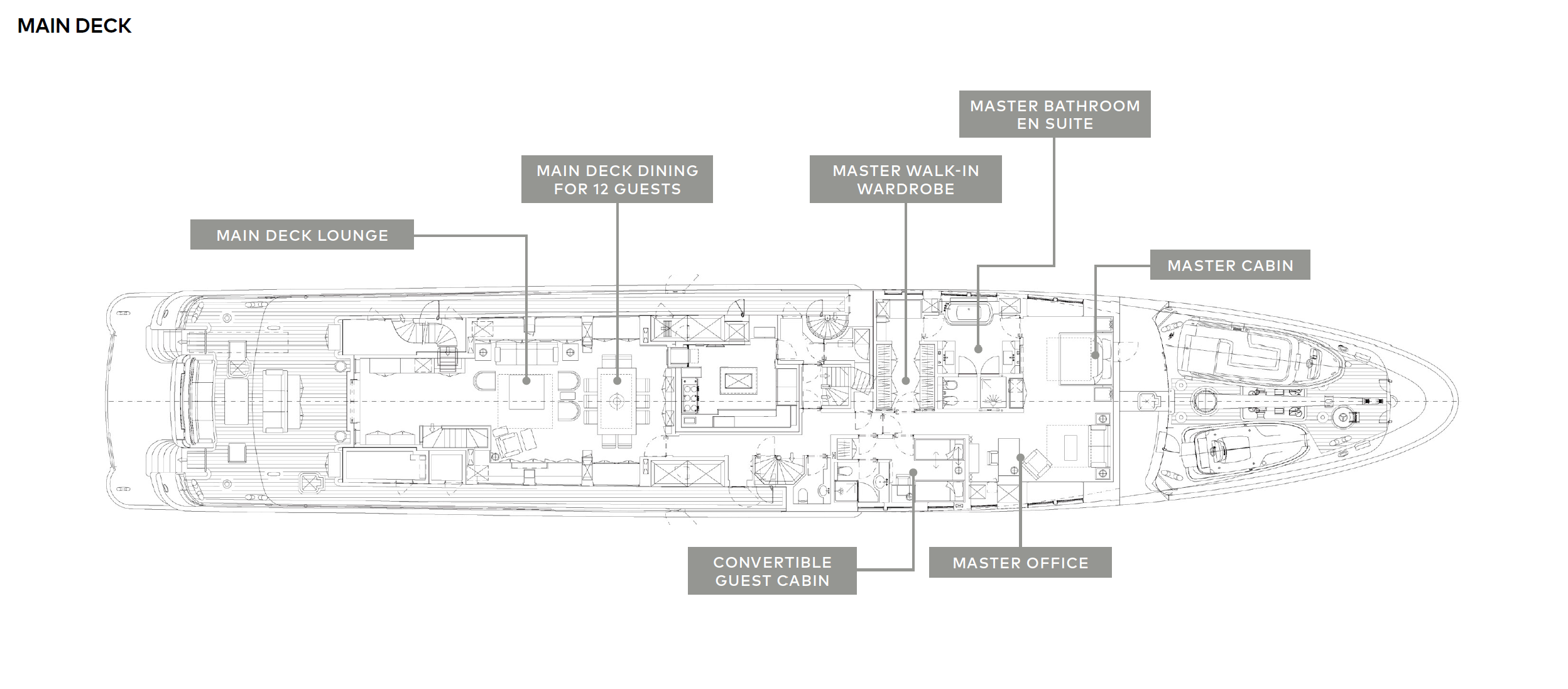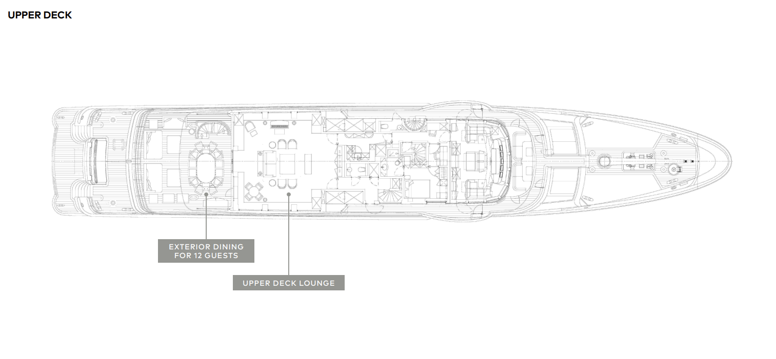 On the main deck aft, guests can enjoy relaxed seating and direct access to the water-level swim platform, perfect for enjoying the azure waters of the West Mediterranean or The Bahamas, while the upper deck aft presents an exquisite exterior dining area ideal for al fresco meals under the night sky.