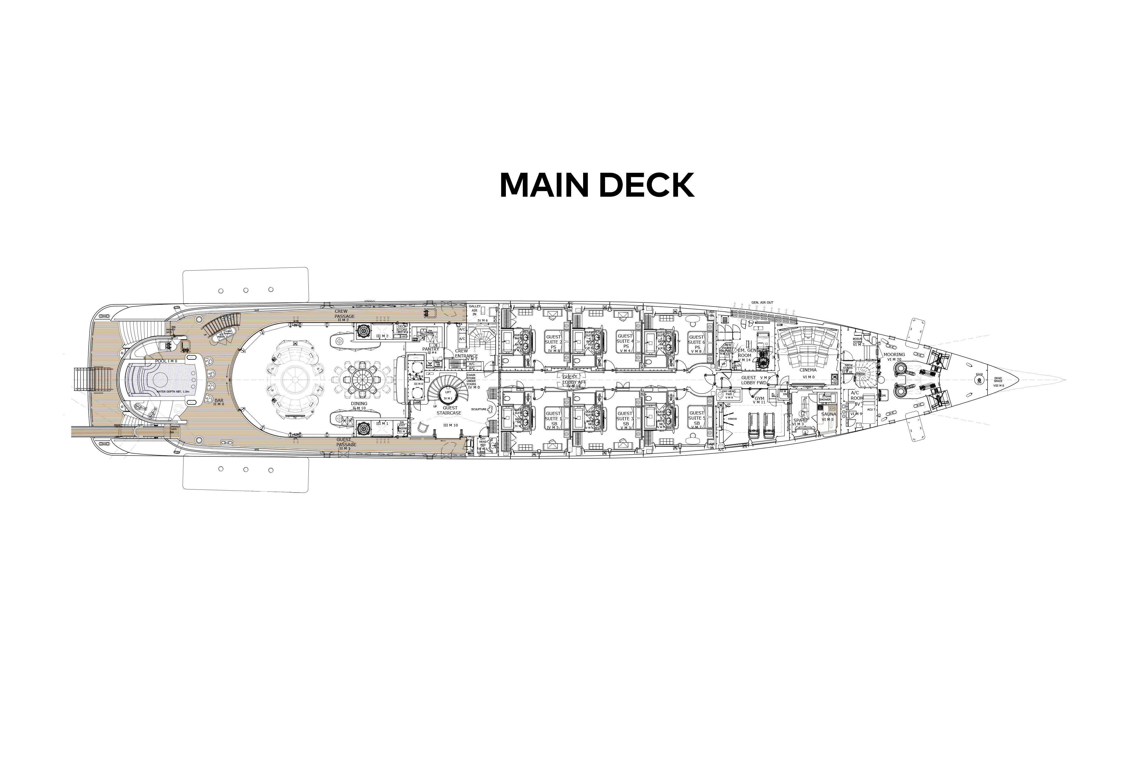 - Large pool on main deck aft and two jacuzzis