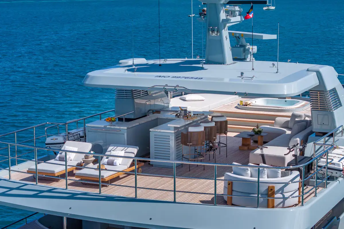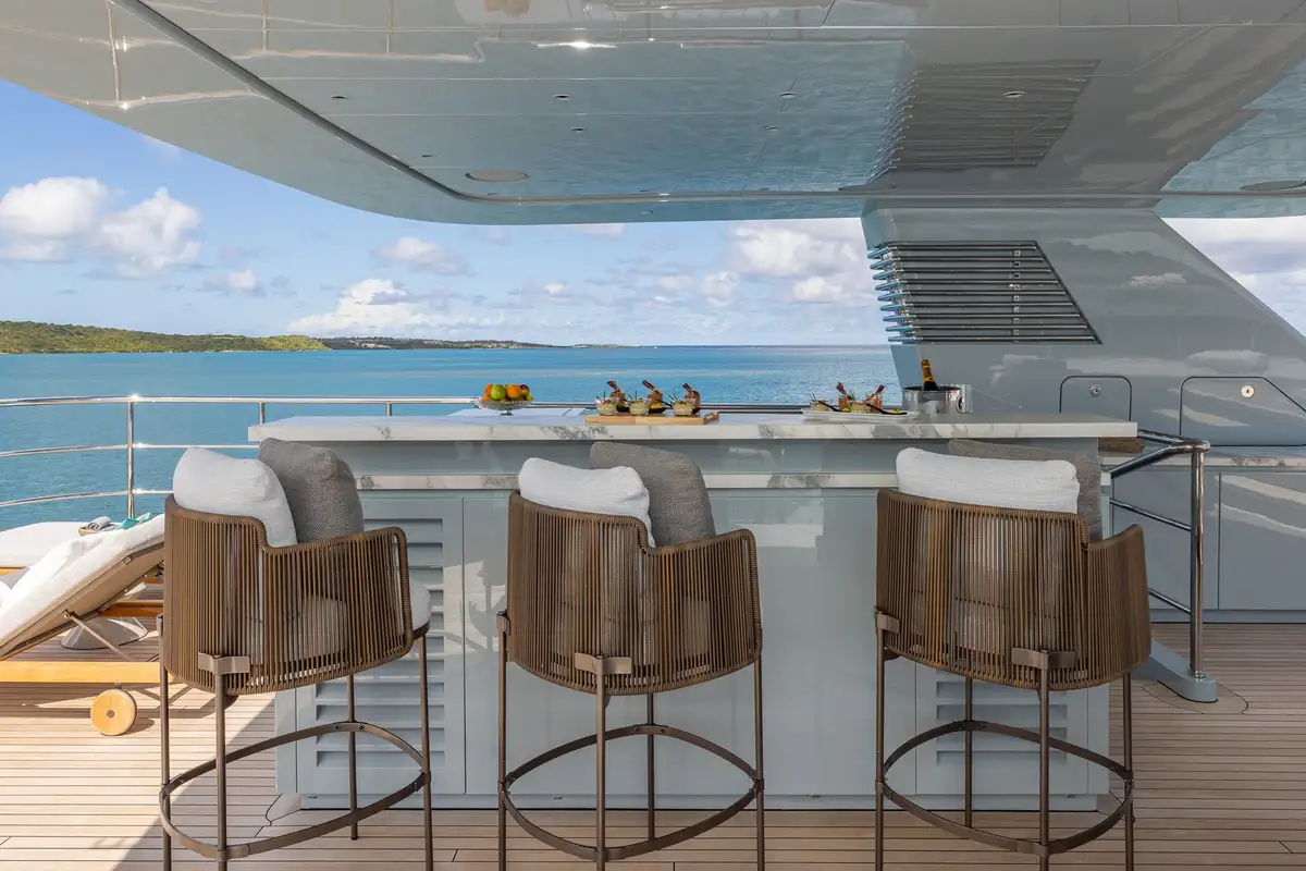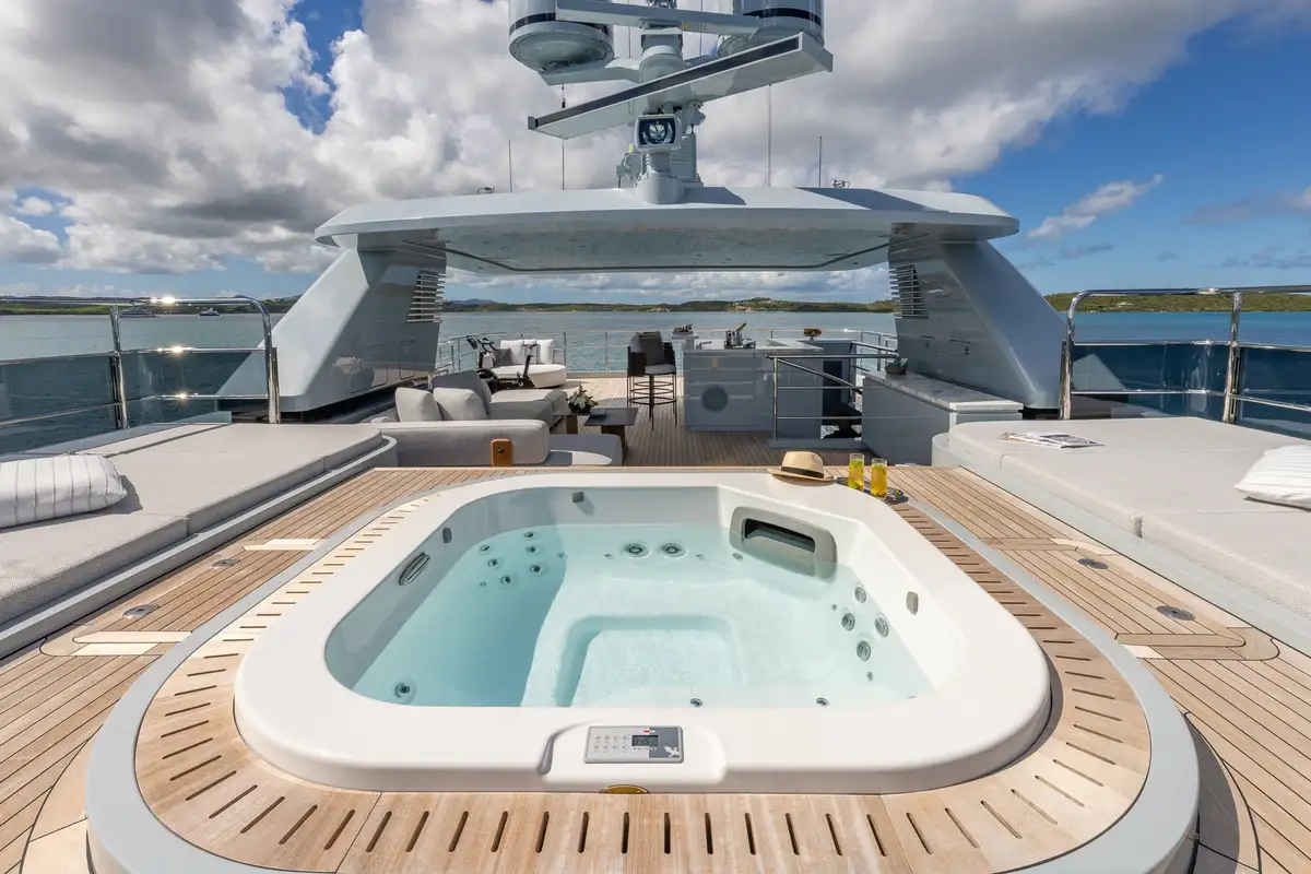 - Spacious sun deck with bar, jacuzzi, and lounging areas