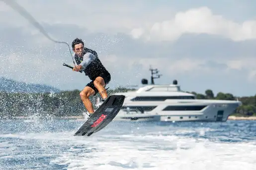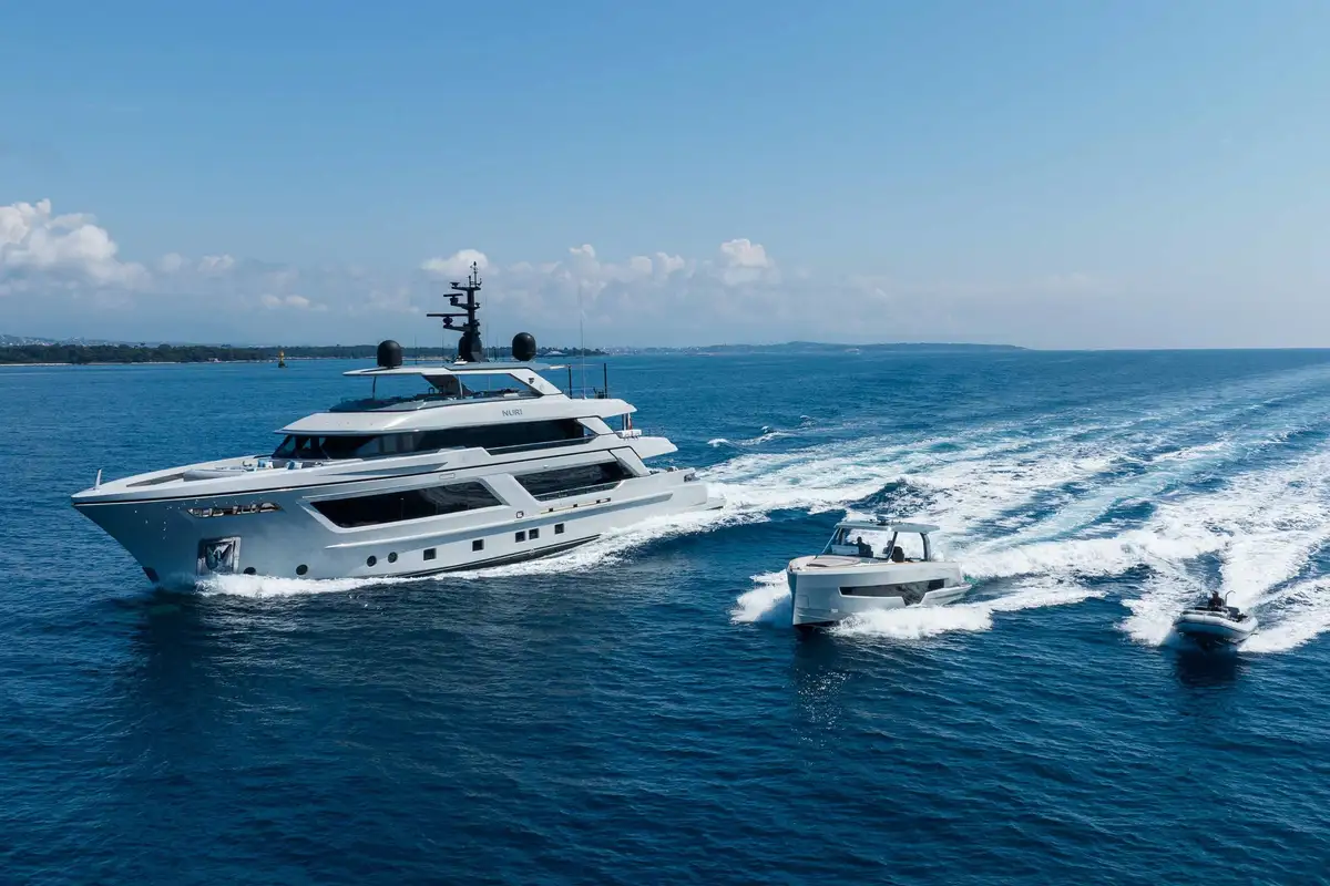 NURI is fully equipped with an extensive range of watersports equipment for those seeking adventure. From the tender, to the fliteboard, to the Seabobs, wake surf foil boards, and wing foil equipment, there’s no shortage of toys for thrill-seekers. For those who prefer to keep their feet dry, the yacht offers four electric scooters and three bicycles, perfect for exploring new shores. The yacht also features a 12.2m Fjord 41 chase tender, ensuring you can easily explore nearby islands or reach secluded coves.