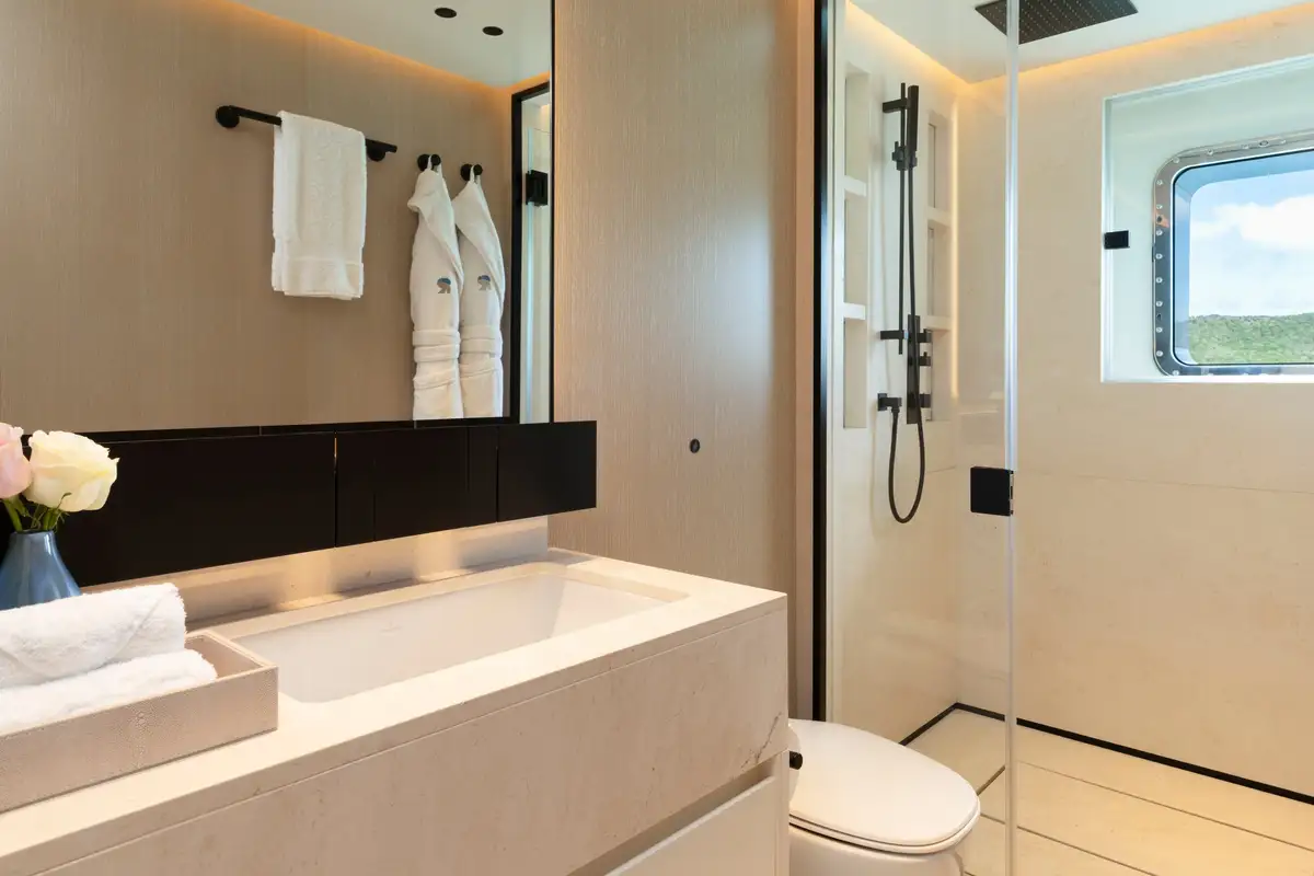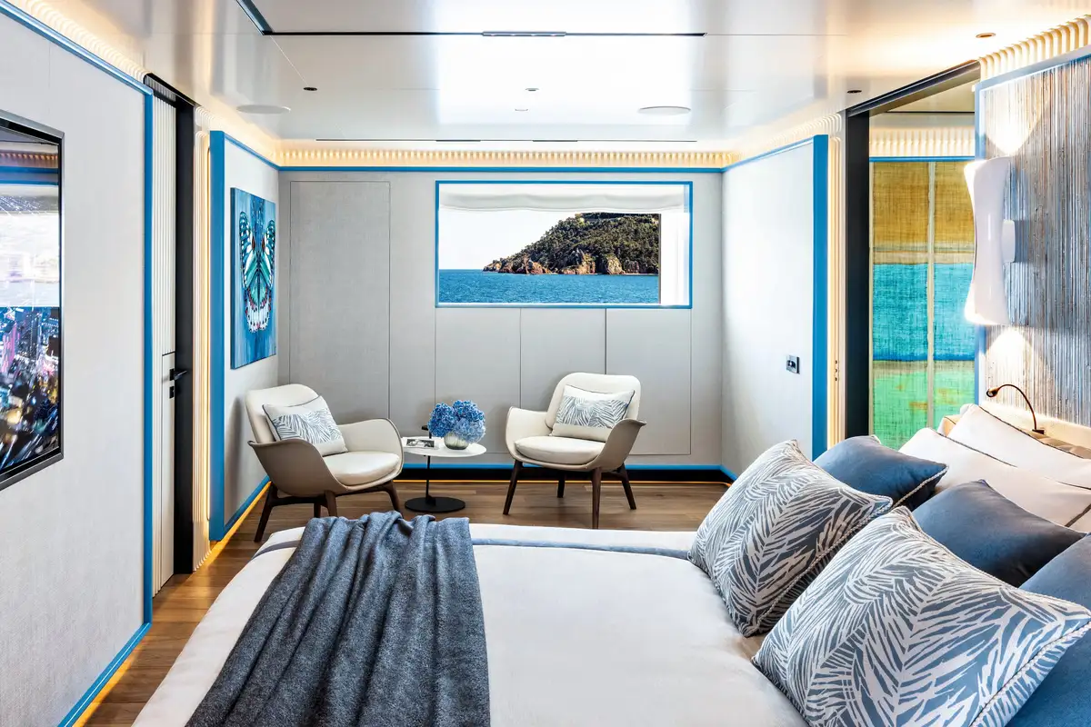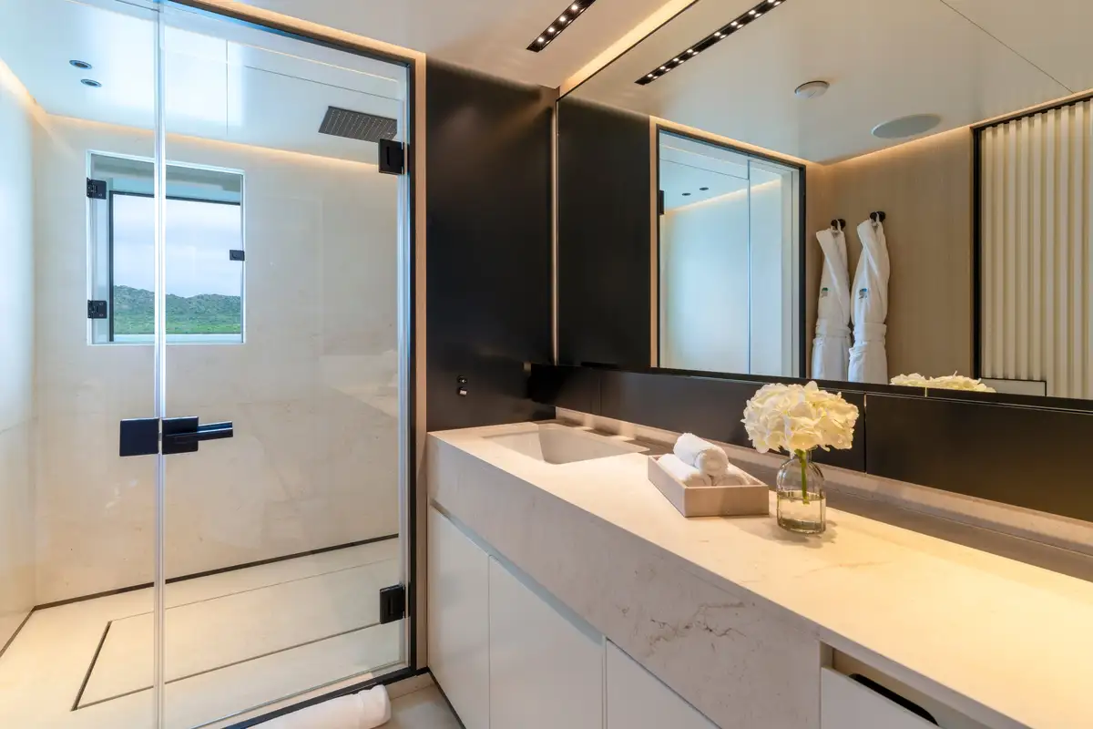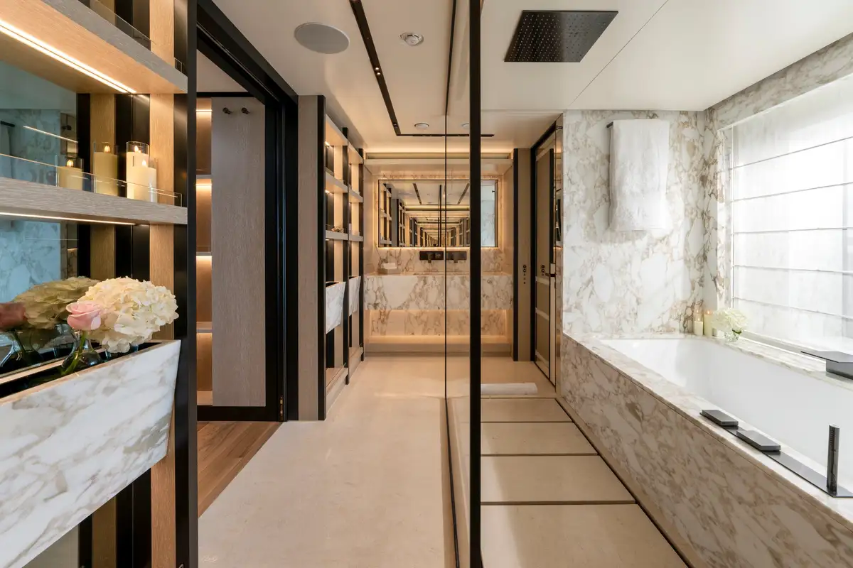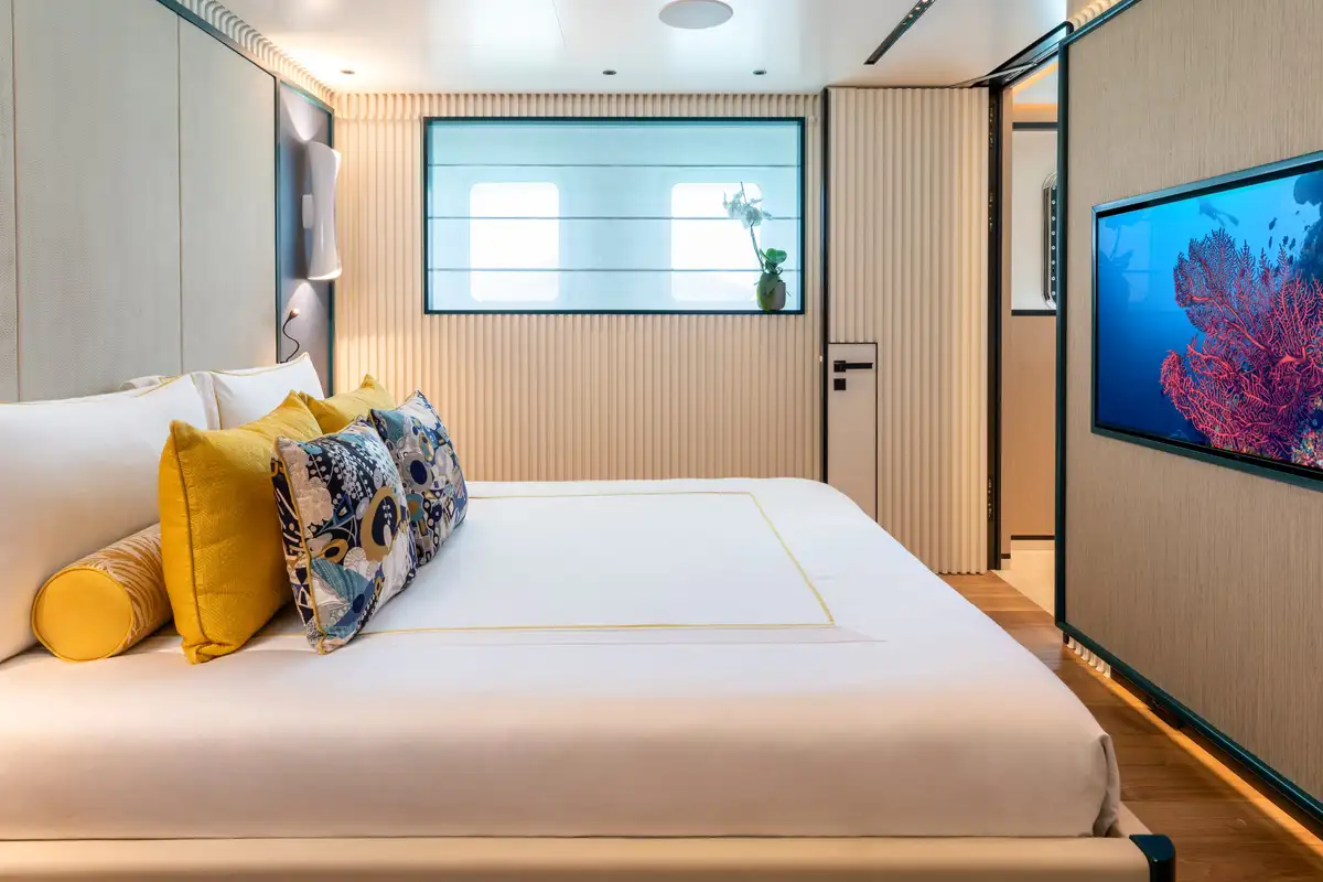 Wake in the serene privacy of the owner’s suite, where floor-to-ceiling windows frame an endless horizon. A morning on RIO might begin with a swim directly from the beach club, a session in the well-equipped gym, or a moment of calm in the hammam. With a vast selection of the latest water toys and tenders, every day invites adventure, whether in the calm Mediterranean or vibrant Caribbean waters.