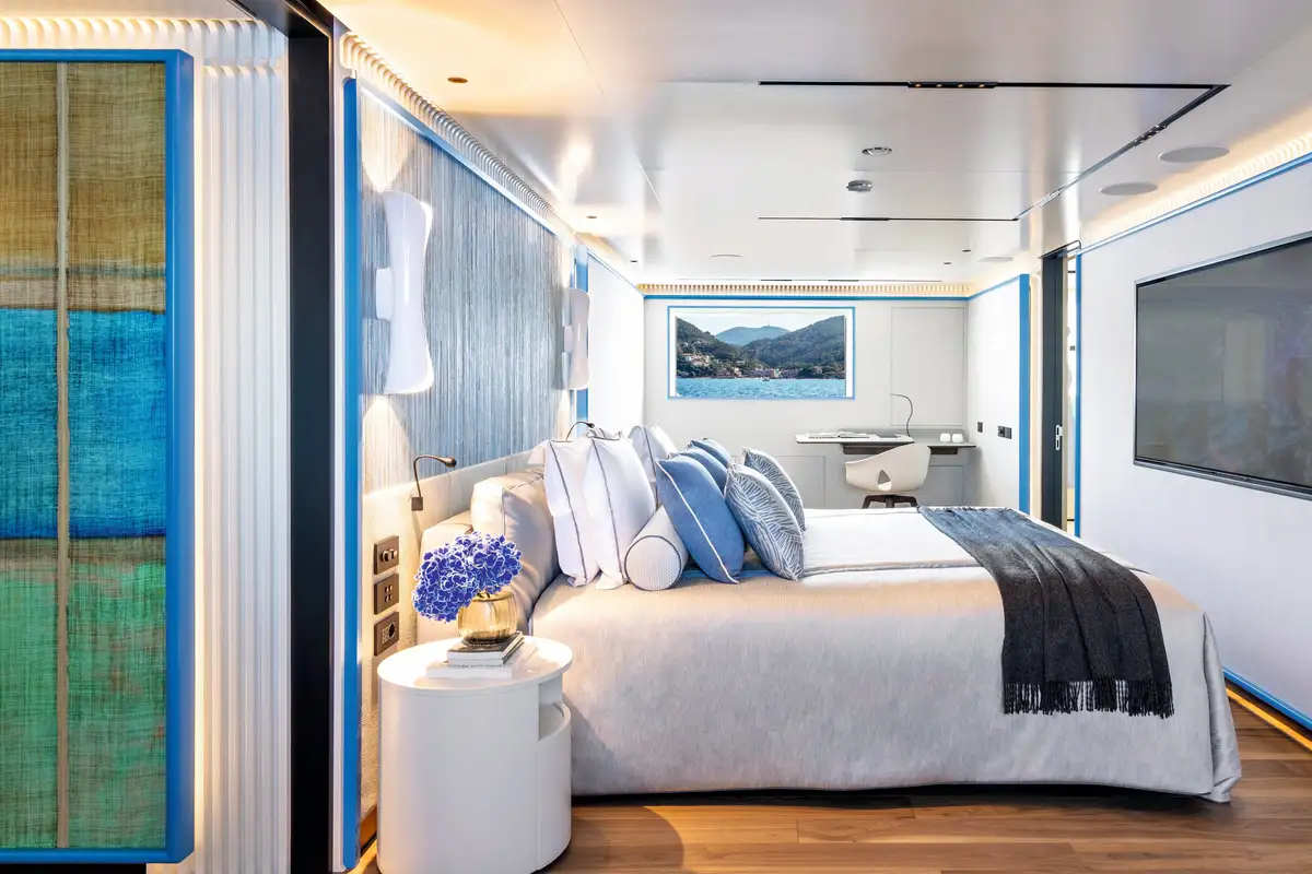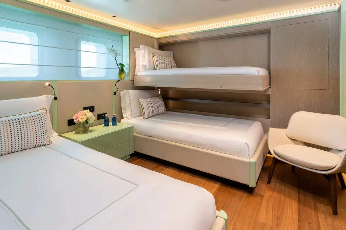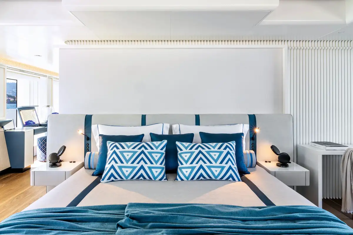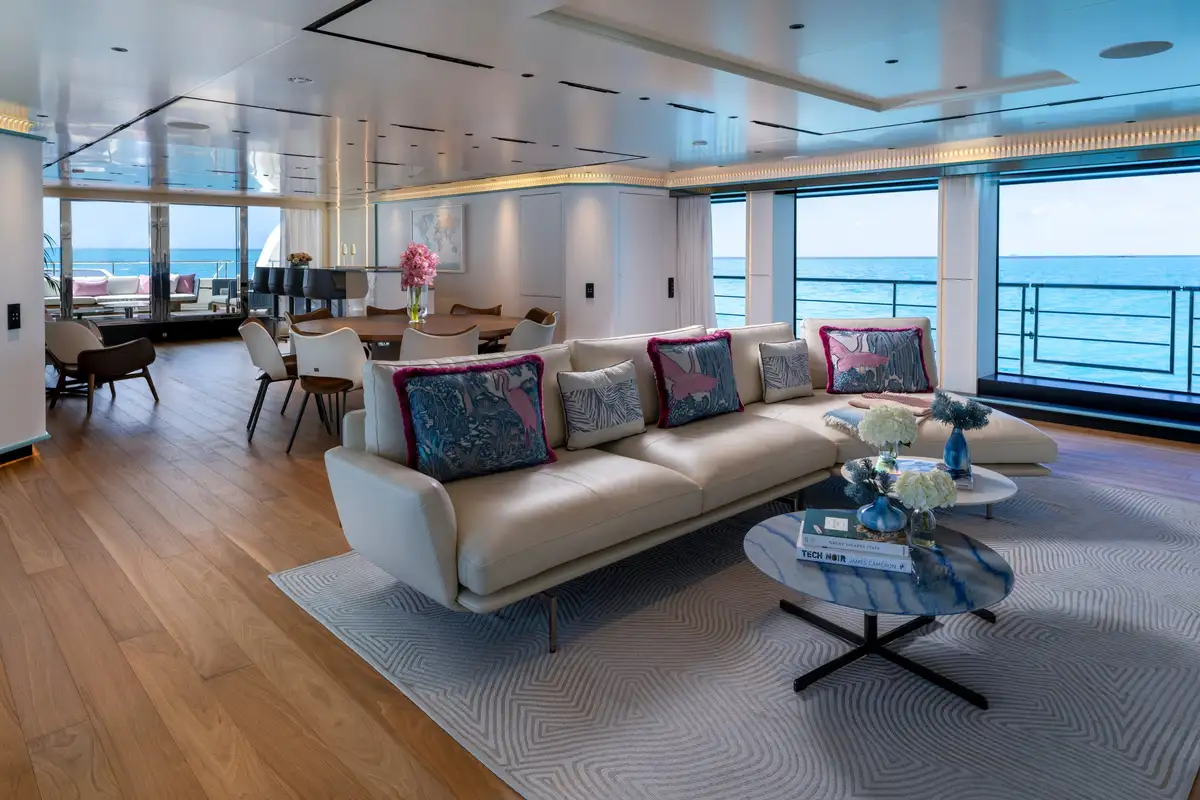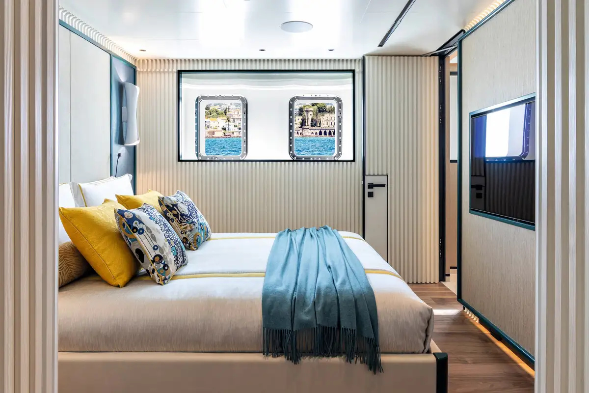 With accommodation for 12 guests across seven beautifully appointed cabins, RIO is exceptionally well suited to extended families and groups of friends. The owner’s suite offers a private terrace, office, and his-and-hers bathrooms, while two VIP suites and four additional guest cabins, one of which is ideally suited for a nanny or security, provide flexible and generous living arrangements.
