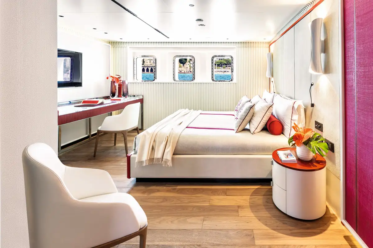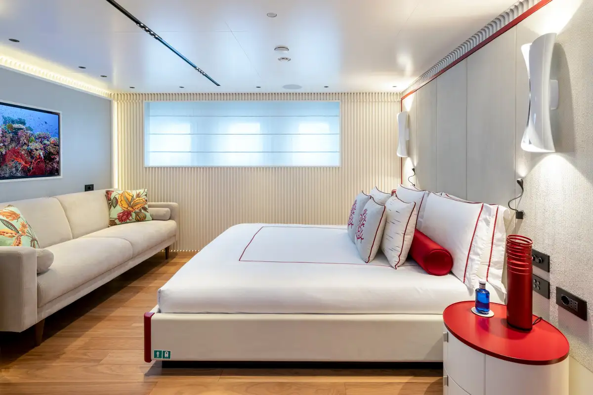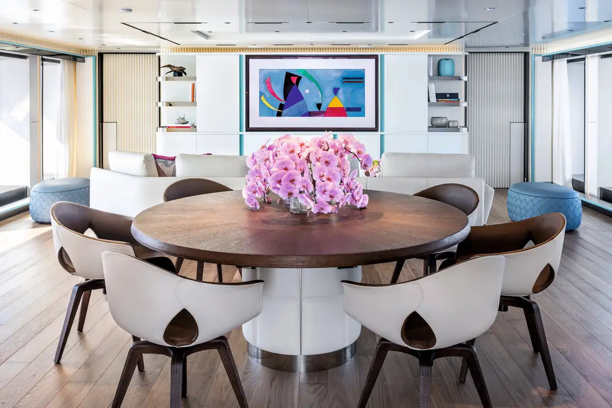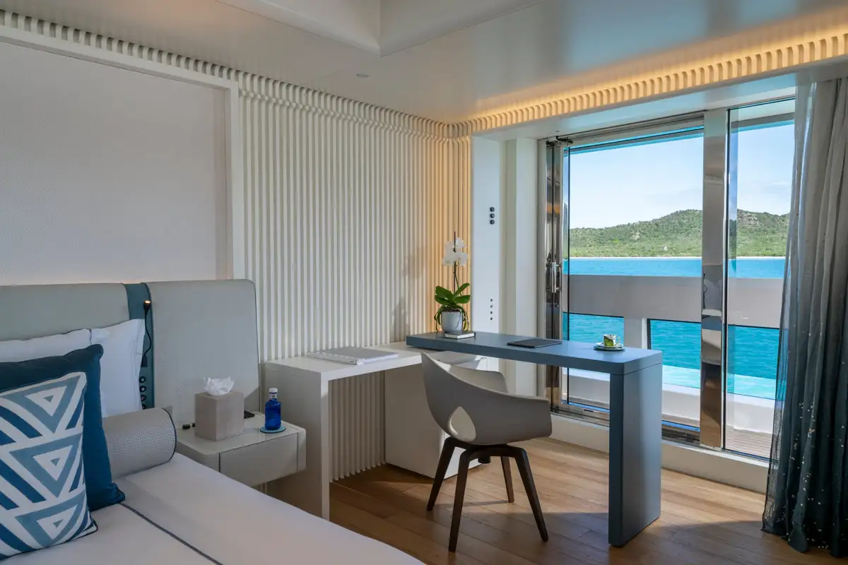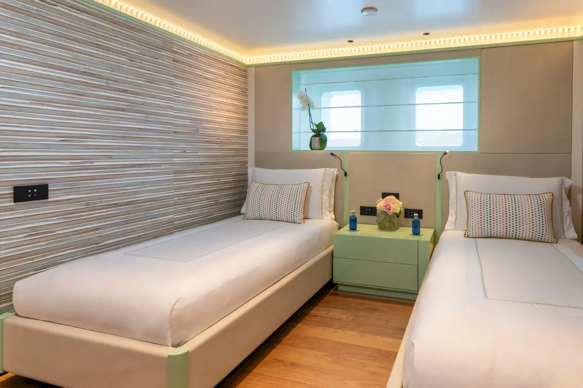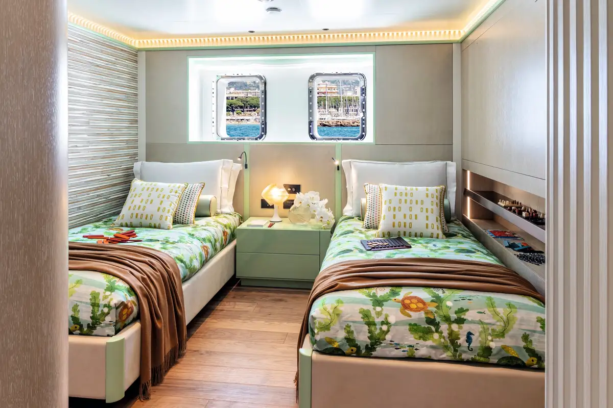 With accommodation for 12 guests across seven beautifully appointed cabins, RIO is exceptionally well suited to extended families and groups of friends. The owner’s suite offers a private terrace, office, and his-and-hers bathrooms, while two VIP suites and four additional guest cabins, one of which is ideally suited for a nanny or security, provide flexible and generous living arrangements.
