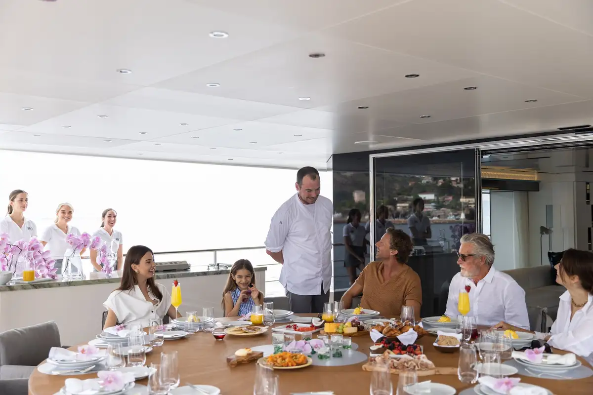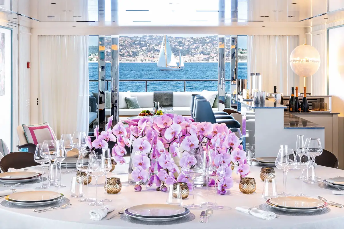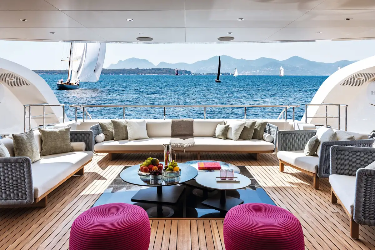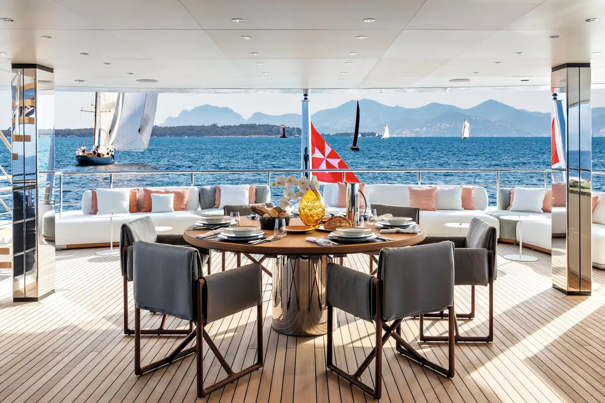 Dinner is served on the main deck aft, an occasion of refined cuisine and expert service beneath the stars. With her youthful, dynamic crew, versatile layout and award-winning design, RIO is a superyacht built for both fun and finesse. Whether for a celebratory charter or a multi-generational escape, she offers a truly unforgettable yachting experience.