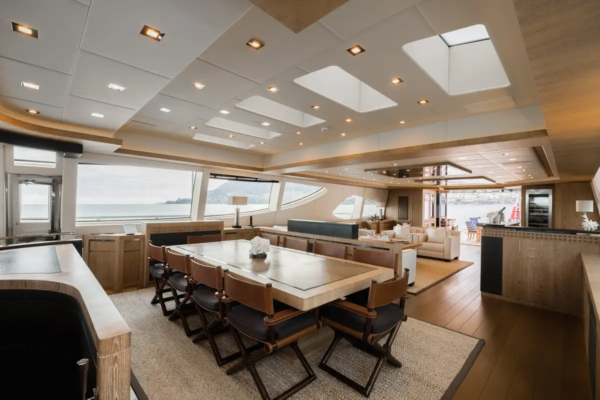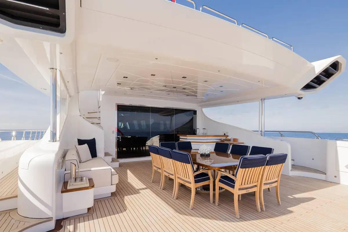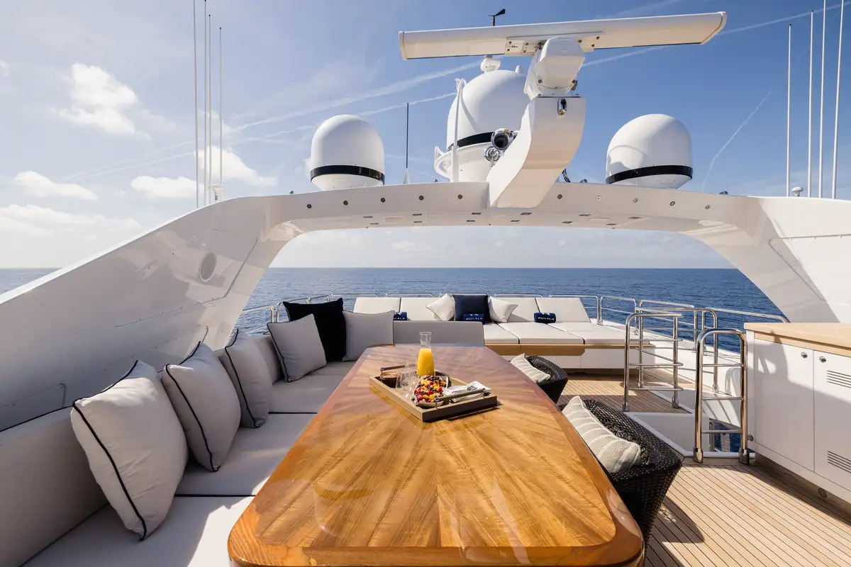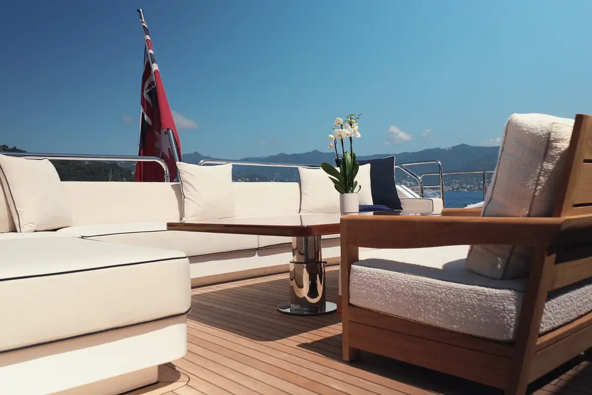 Want to relax in style? Head to the main deck aft where built-in seating and a large table await, perfect for al fresco meals.