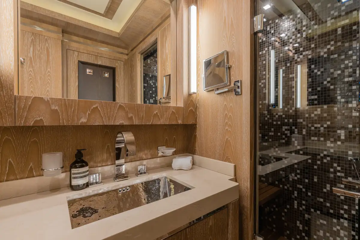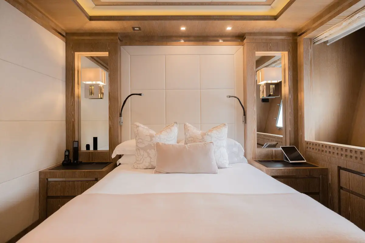 With nine Seakeeper gyrostabilisers she remains stable both at anchor and underway so you can let your hair blow in the wind, without worrying about a bumpy ride. Her modest draft of 1.6m (5.9ft) allows her to explore the charming bays and ports that are off-limits to many large yachts.