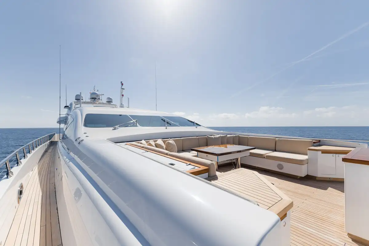 For a little more privacy, the foredeck boasts comfortable built-in sun pads - ideal for lounging in the sun without a care in the world.