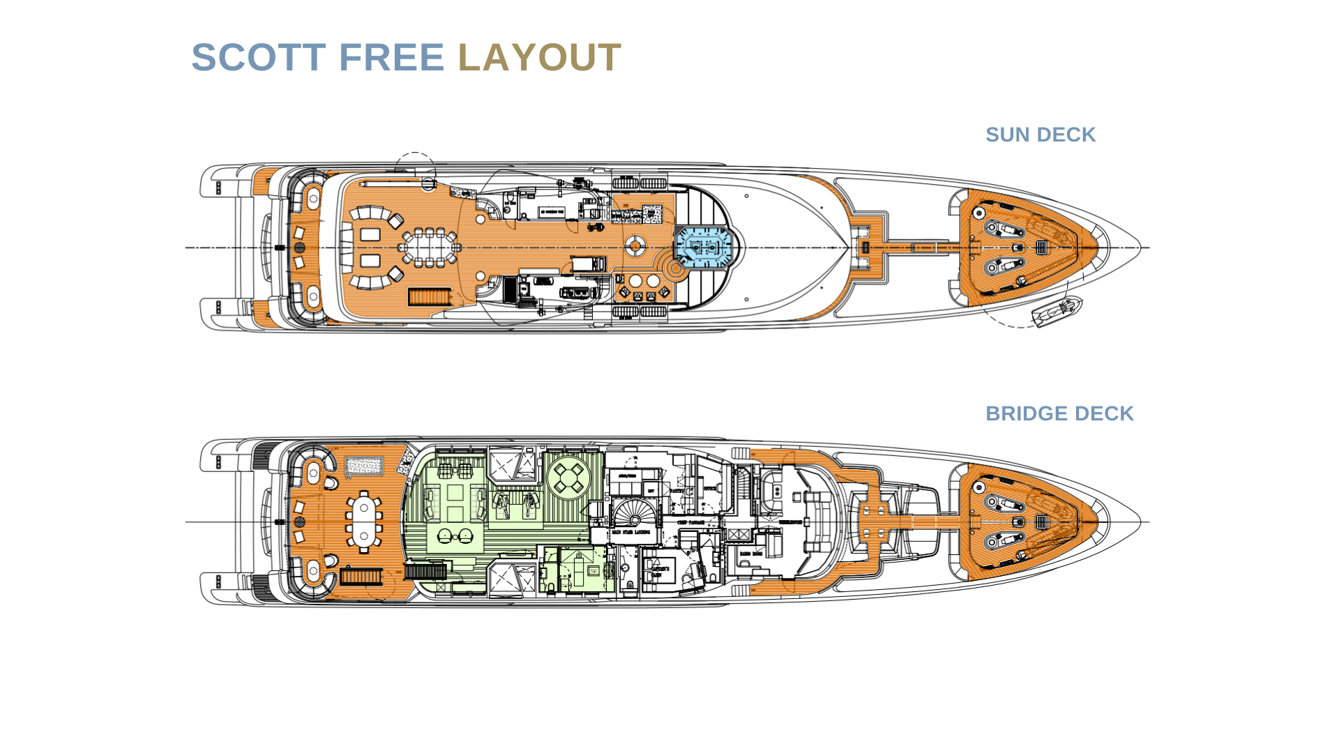 也可供购买。Having completed a circumnavigation of the world under her first ownership, SCOTT FREE is now a proven and highly regarded charter yacht and has been maintained to the very highest standards. She offers a highly flexible accommodation layout with master suite on the main deck, and four guest cabins on the lower deck (two king size beds, two queen beds which can also be set up as twins), and one multipurpose cabin on the bridge deck with two pullman berths. The four lower deck guest cabins are also interlinked so can be set up as two full beam VIP suites complete with lounge area.