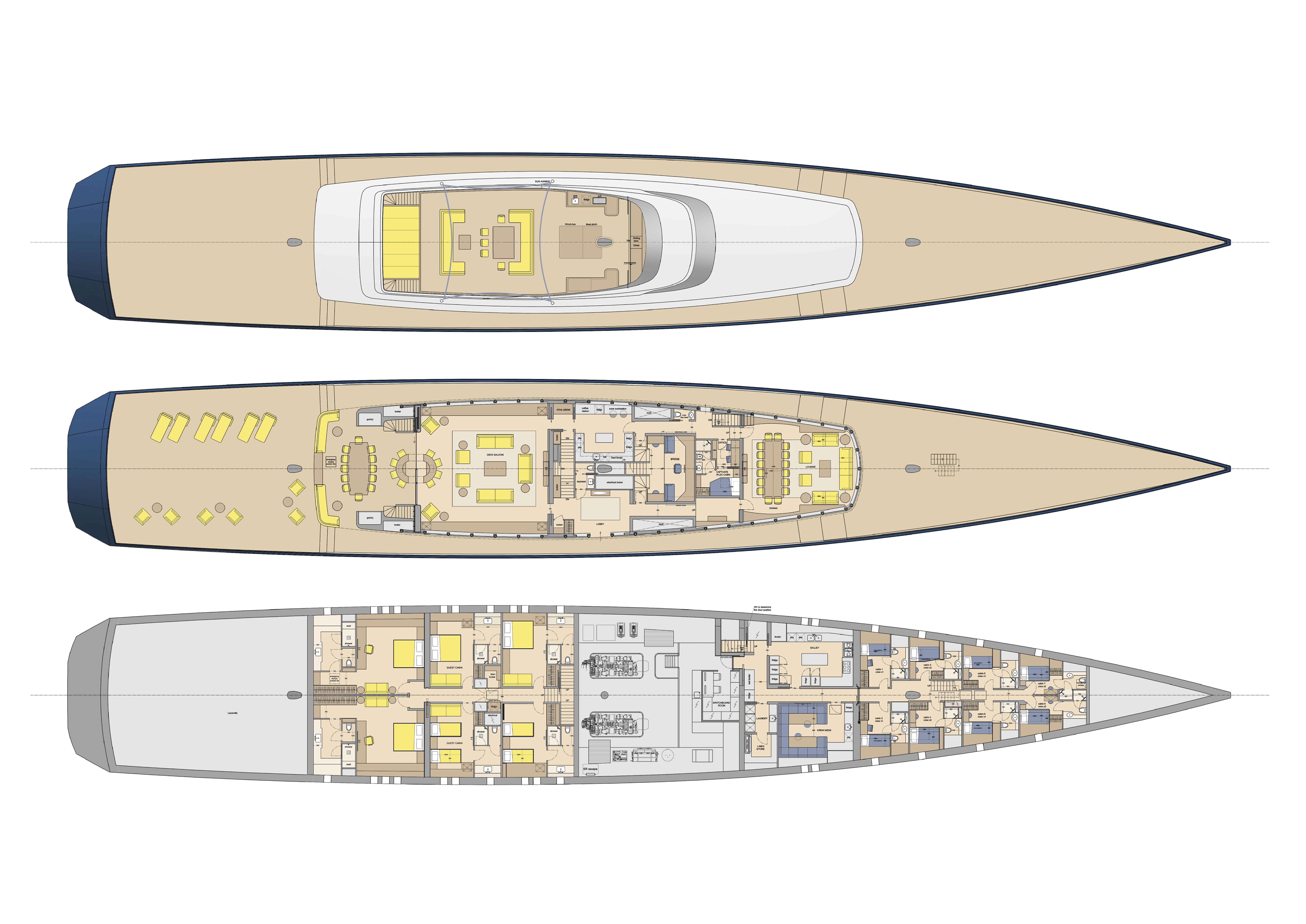 At anchor her vast deck spaces transform into a playground of possibilities. See the sun set with a cocktail on the flybridge as the chef prepares an informal dinner on the BBQ. Watch a movie on a huge screen in the main deck’s outdoor cinema or climb into the eagle’s nest that rises up the main mast to enjoy thrilling bird’s-eye views of your anchorage.