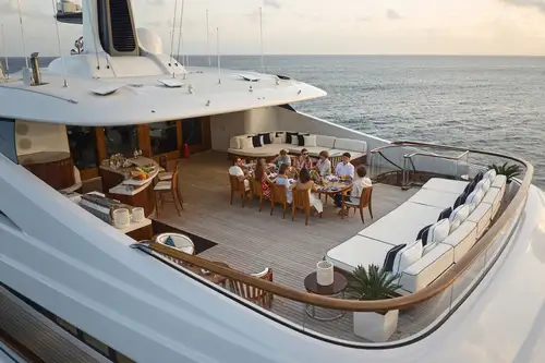 Dine without compromise with three gifted and versatile chefs, a wood fired pizza oven, charcoal BBQ and bar on the sun deck, wine cellar and a full beach BBQ set-up. Watch movies in the chic and spacious cinema or sports on the sun deck's outdoor TV screen, then entertain your guests into the night on a baby grand piano – so many options to create a fantastic atmosphere on board.