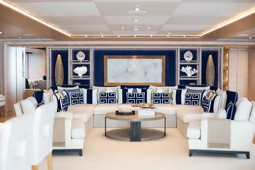 Winch Design was appointed to create the exterior guest areas, livery, interior decoration and owner's supply, resulting in excess of over 1,000sq metres of design elements being created across all decks. The design vision of STARBURST IV demonstrates an optimised balance between interior and exterior spaces, with impressive volume and a free flowing layout for a relaxed indoor-outdoor living environment.