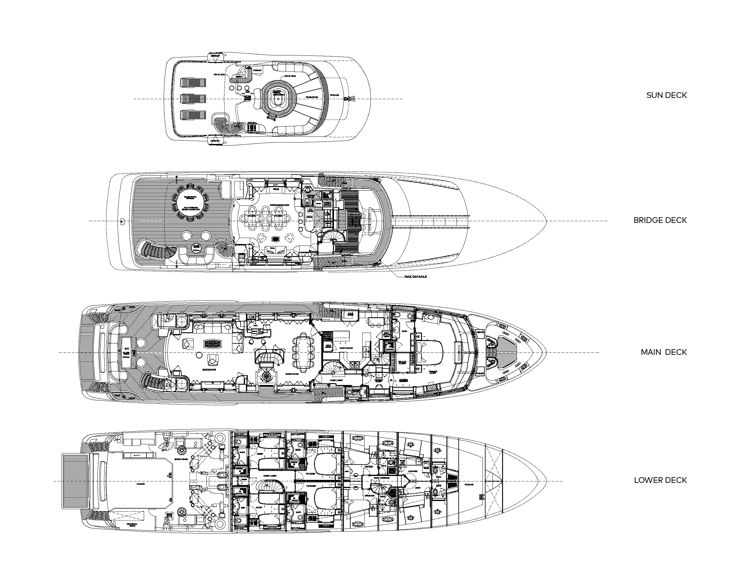 - Expansive sun deck with jacuzzi, wet bar, and panoramic seating
