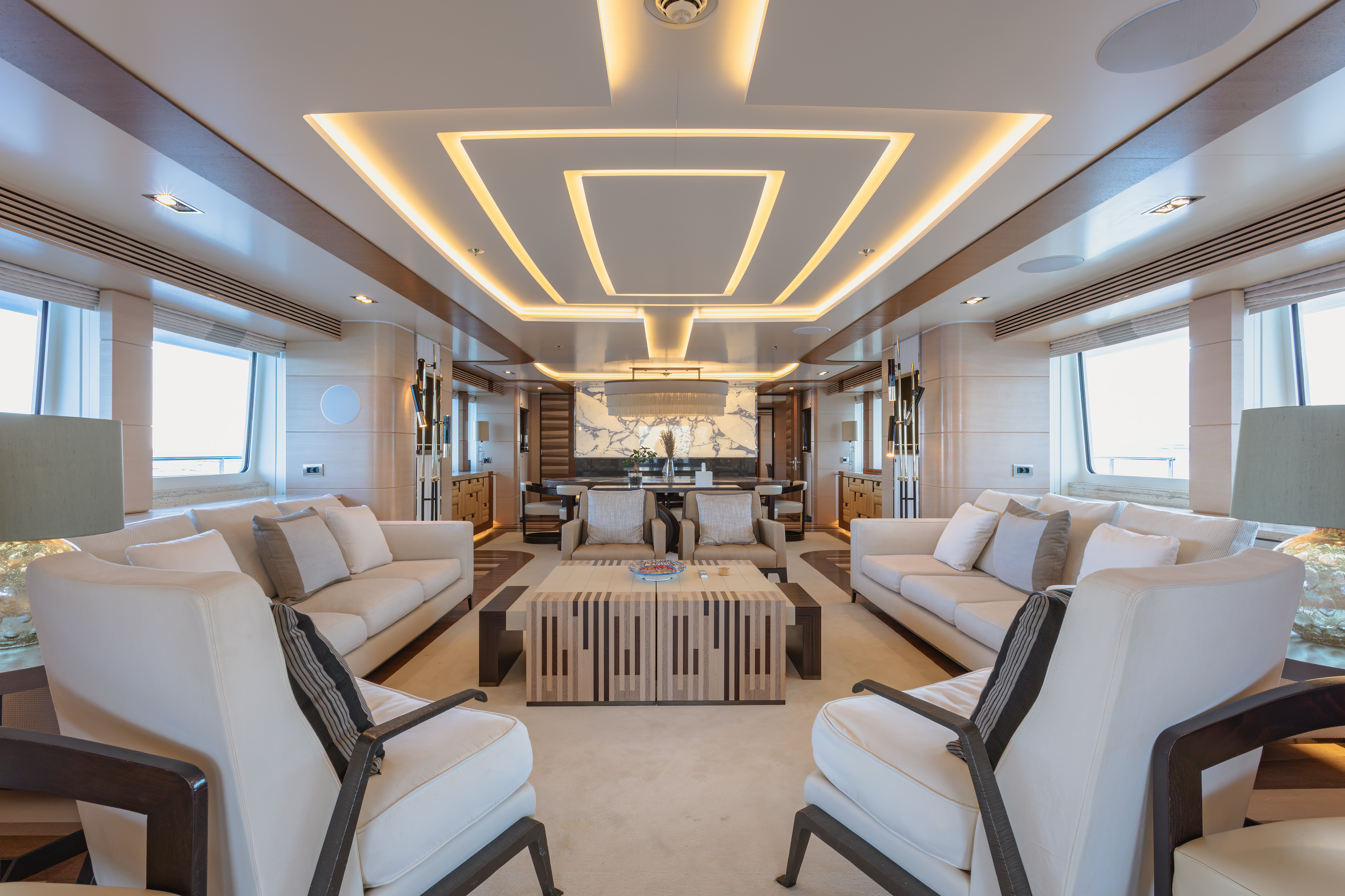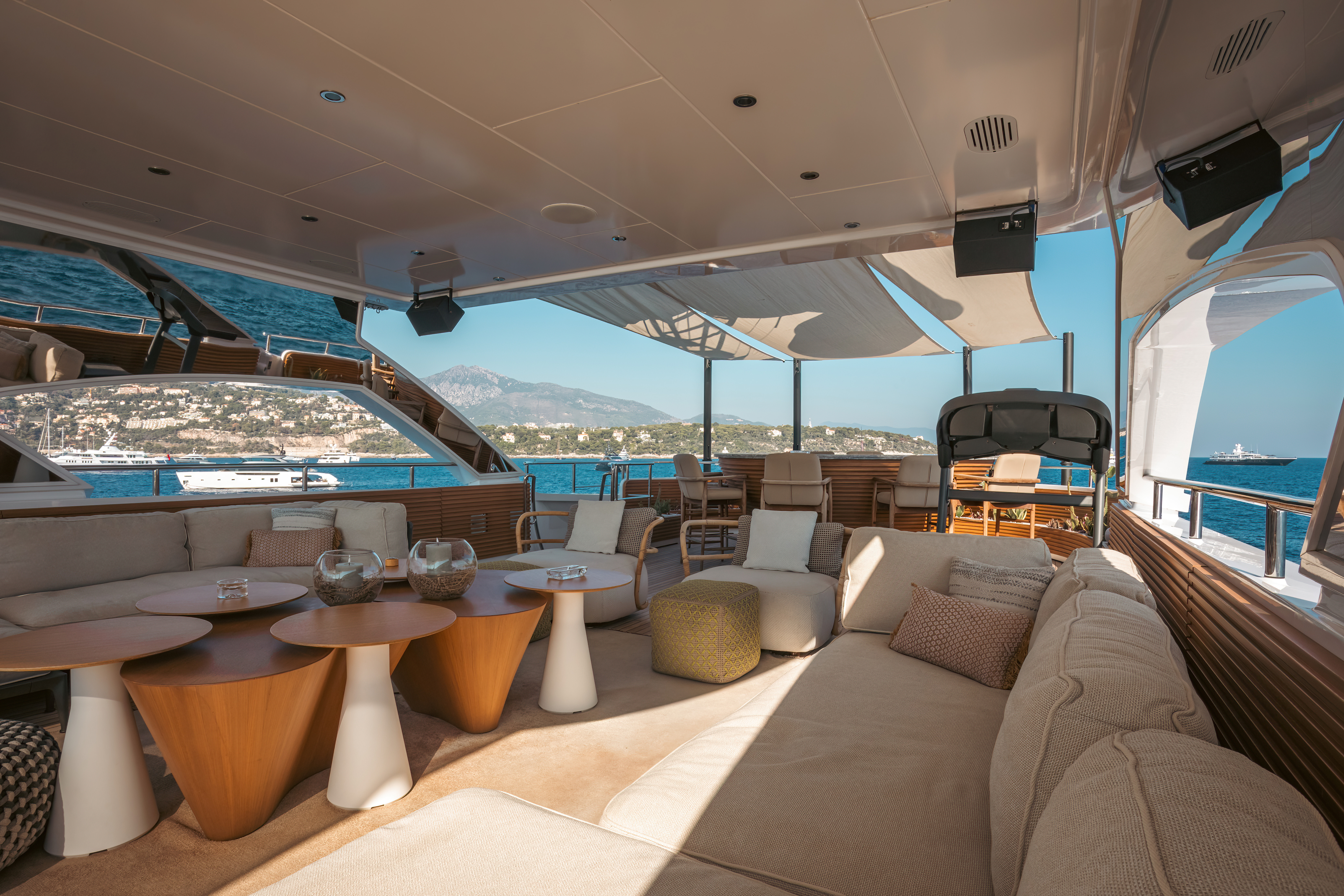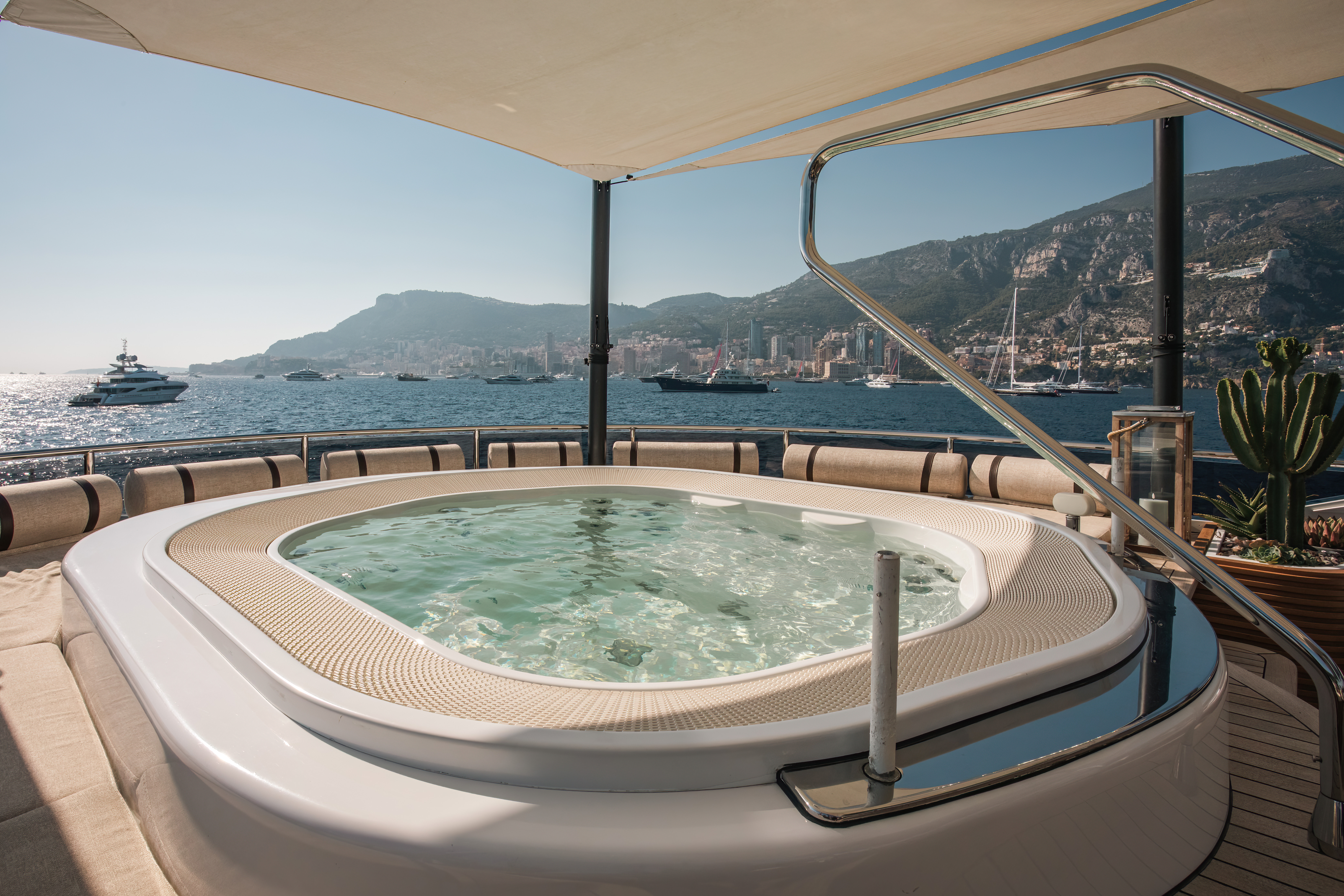 For entertaining and sunbathing, MY SECRET has ample deck space with two oversized jacuzzis and even a cactus garden for a tranquil slice of nature on board.