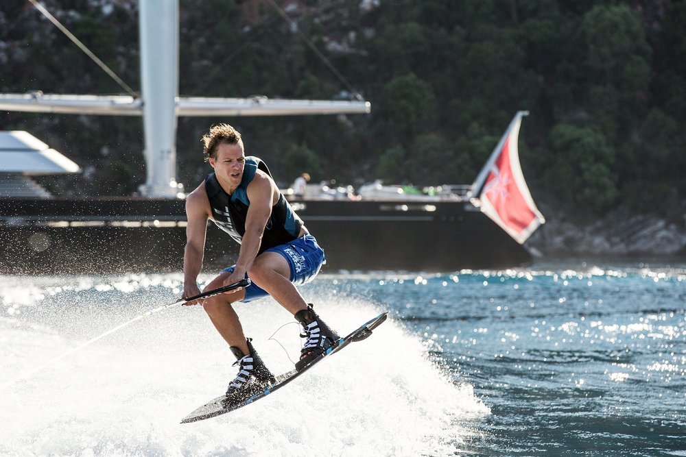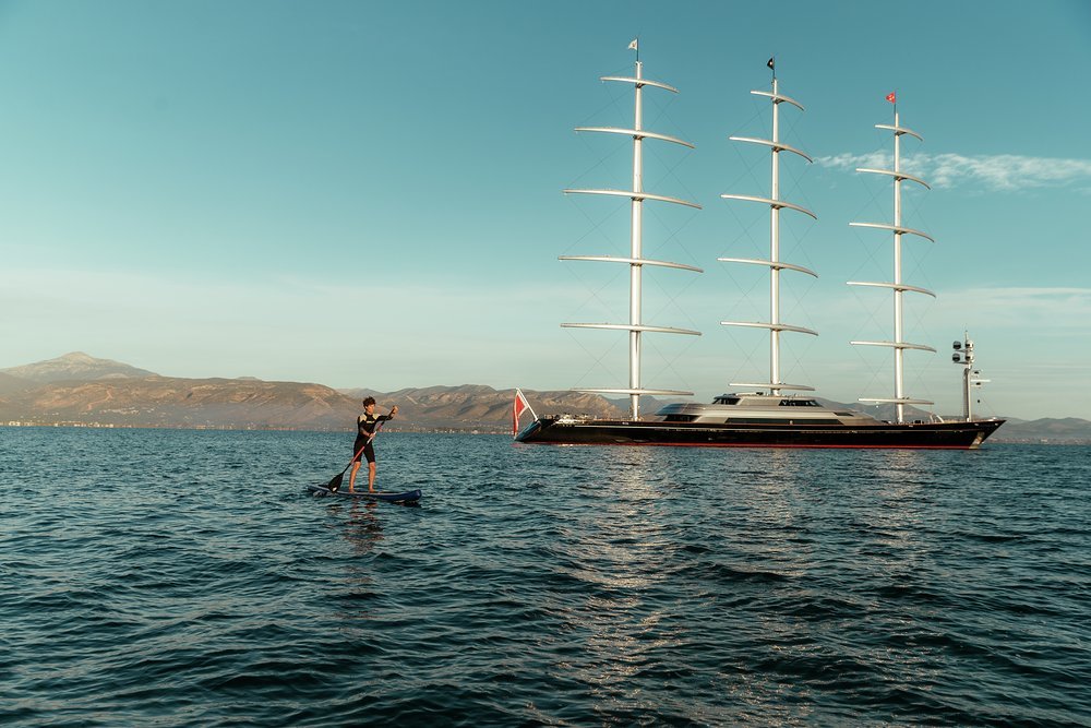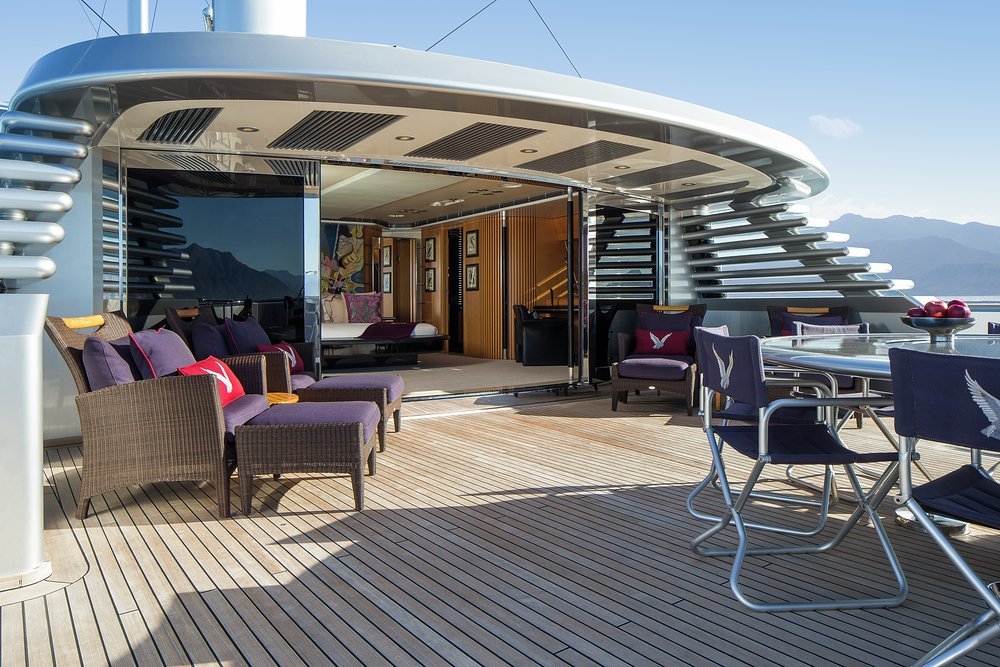 Whether you want to feel the adrenaline surge or move at a calmer, more reflective pace, you'll find what you're looking for in the toy garage. She has a 10m (33ft) Pascoe tender to ferry guests into town or onto a deserted beach for a BBQ, and thrill them on waterskis and wakeboards. SeaBobs, kayaks, SUPs, jet surfs, scuba diving and snorkelling equipment, windsurfers, an inflatable platform for relaxing at sea level - she has plenty to keep her guests entertained.