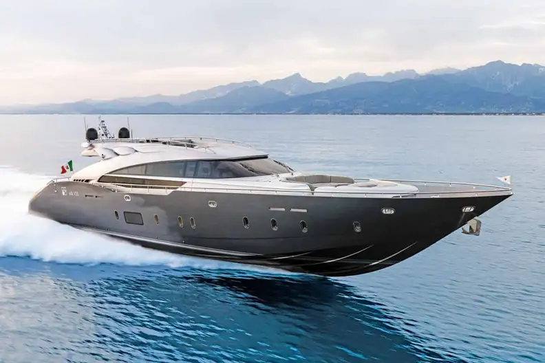 The 54 knot 30.5m (100.1ft) AB100 is a fast planing yacht built by Italian yard AB Yachts (Part of the Fipa Group). She has an epoxy GRP hull that is reinforced with Kevlar and carbon. Her interior styling/design can be that of the owner’s choosing. She’s Built to RINA + certification and is CE Cat A
