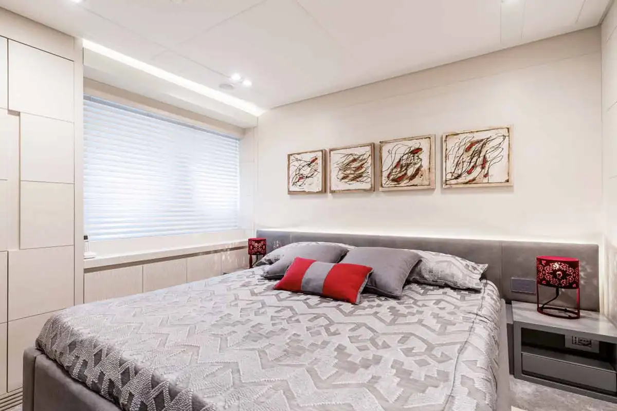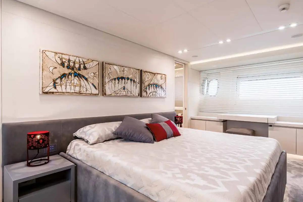 - Full-beam owner's suite features large hull windows, a walk-in wardrobe and en suite heads