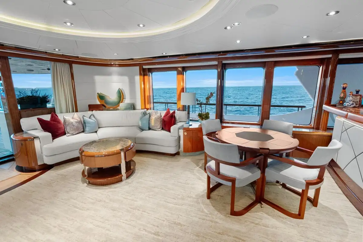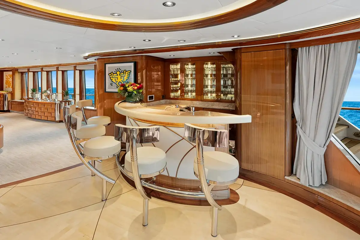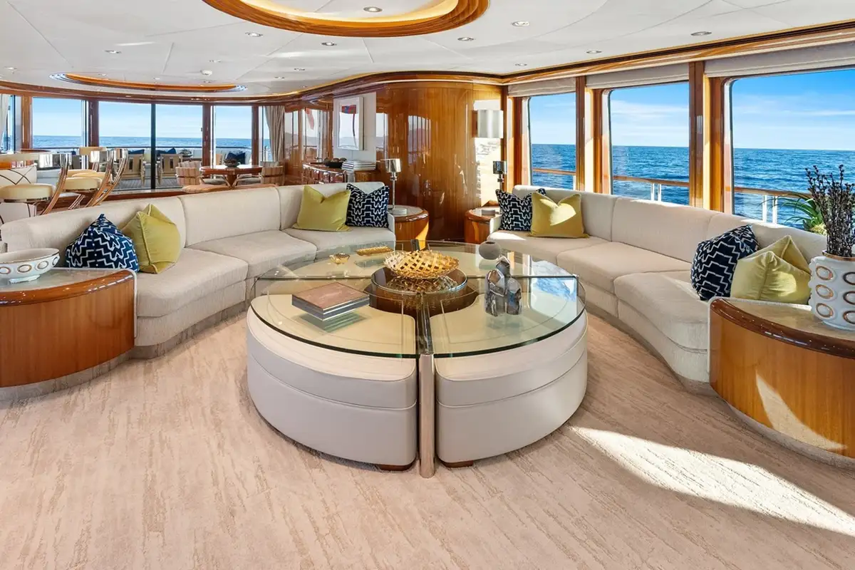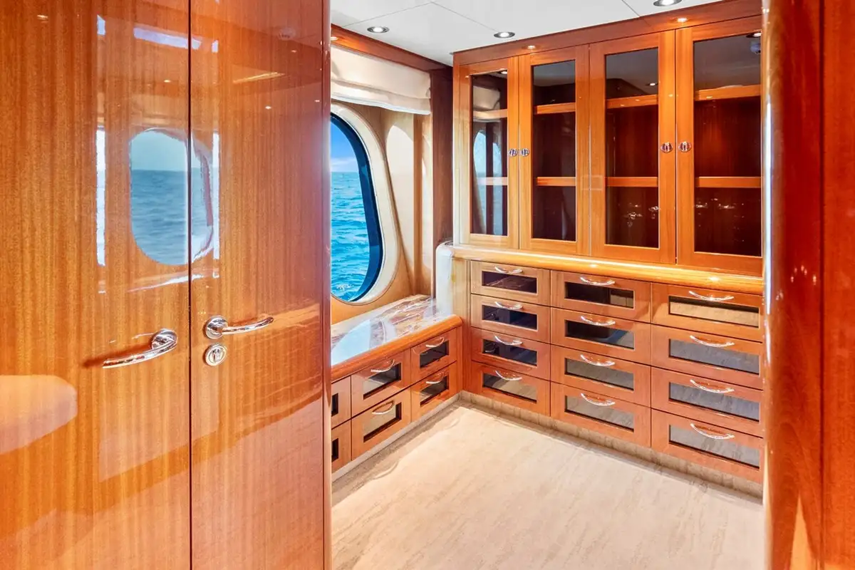 Accommodation for eleven guests in five luxurious staterooms that all feature fine marble as well as elegant cherry and maple burl woods throughout this spectacular yacht, with a serene and modern interior decor.