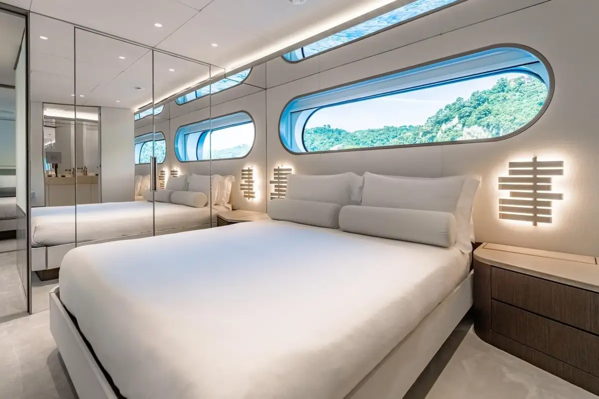 She can accommodate up to 10 guests in 5 staterooms, with 6 crew members waiting on their every need.
