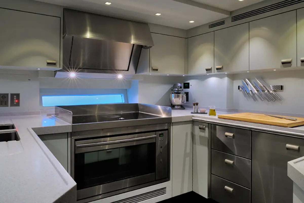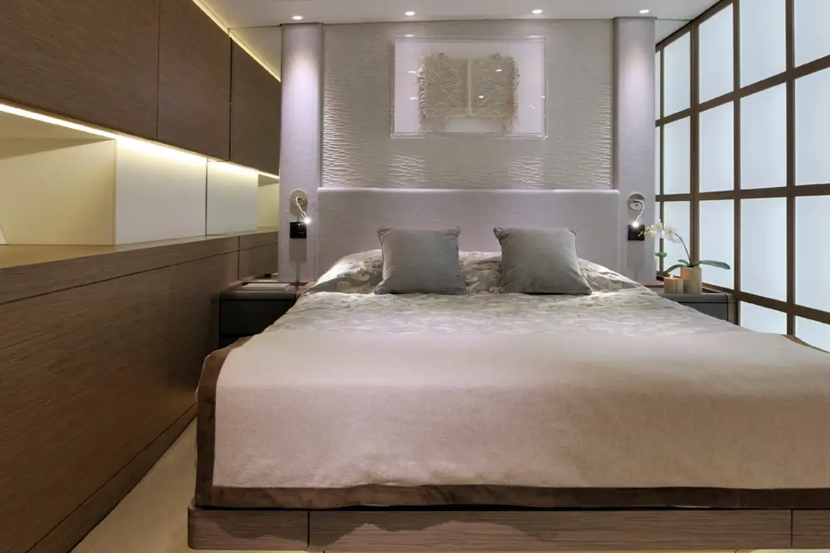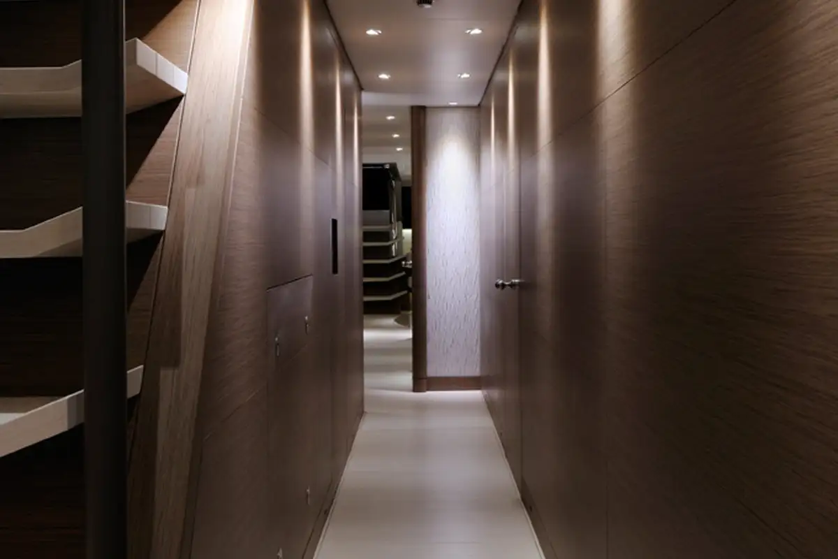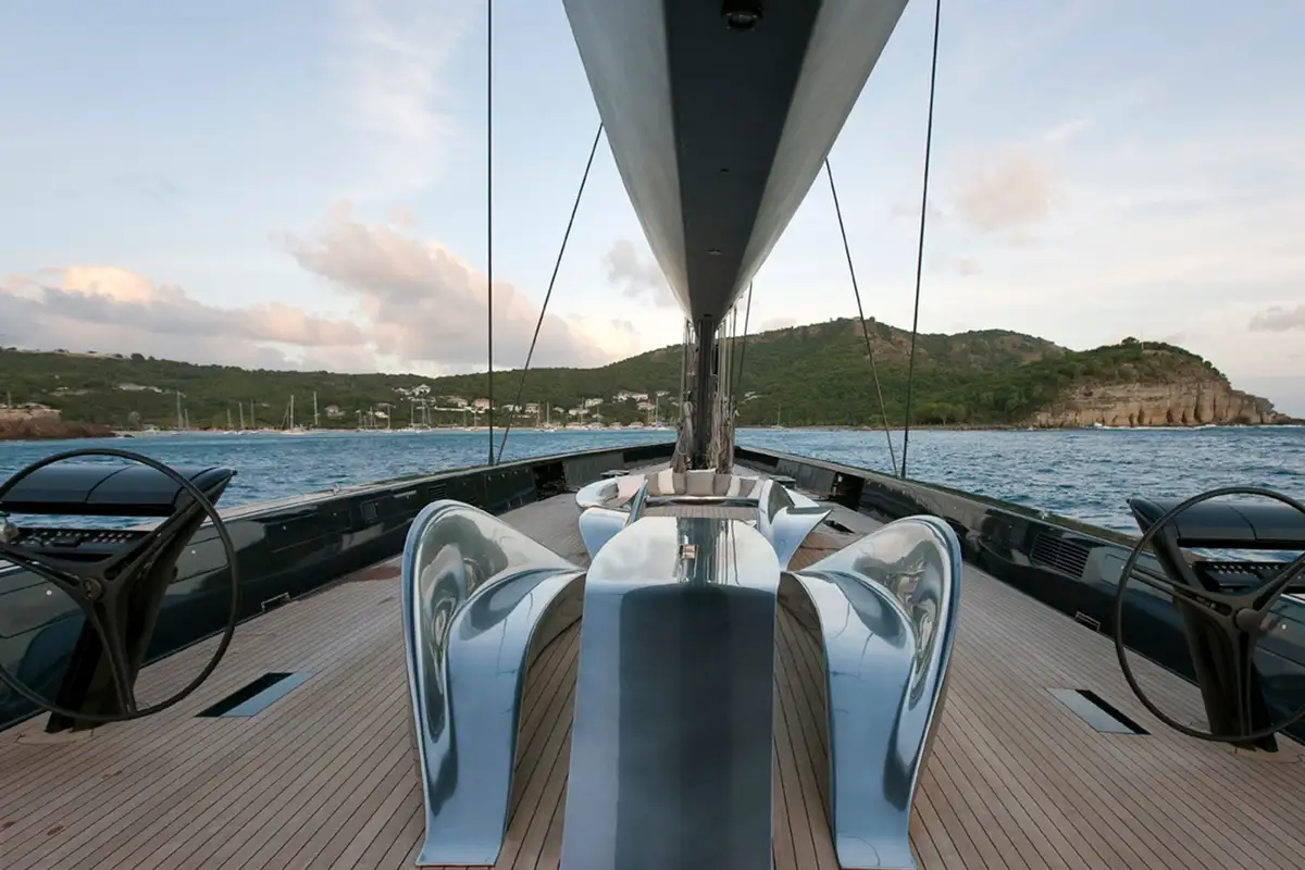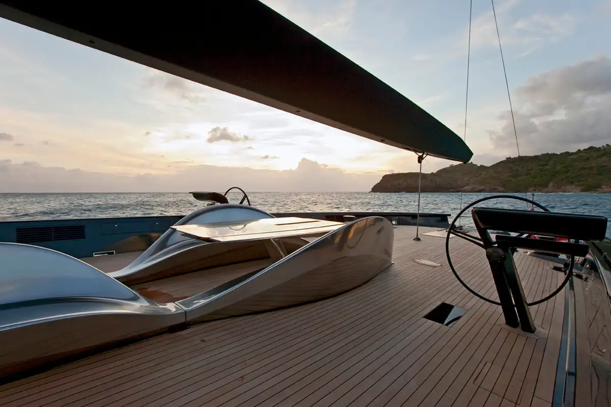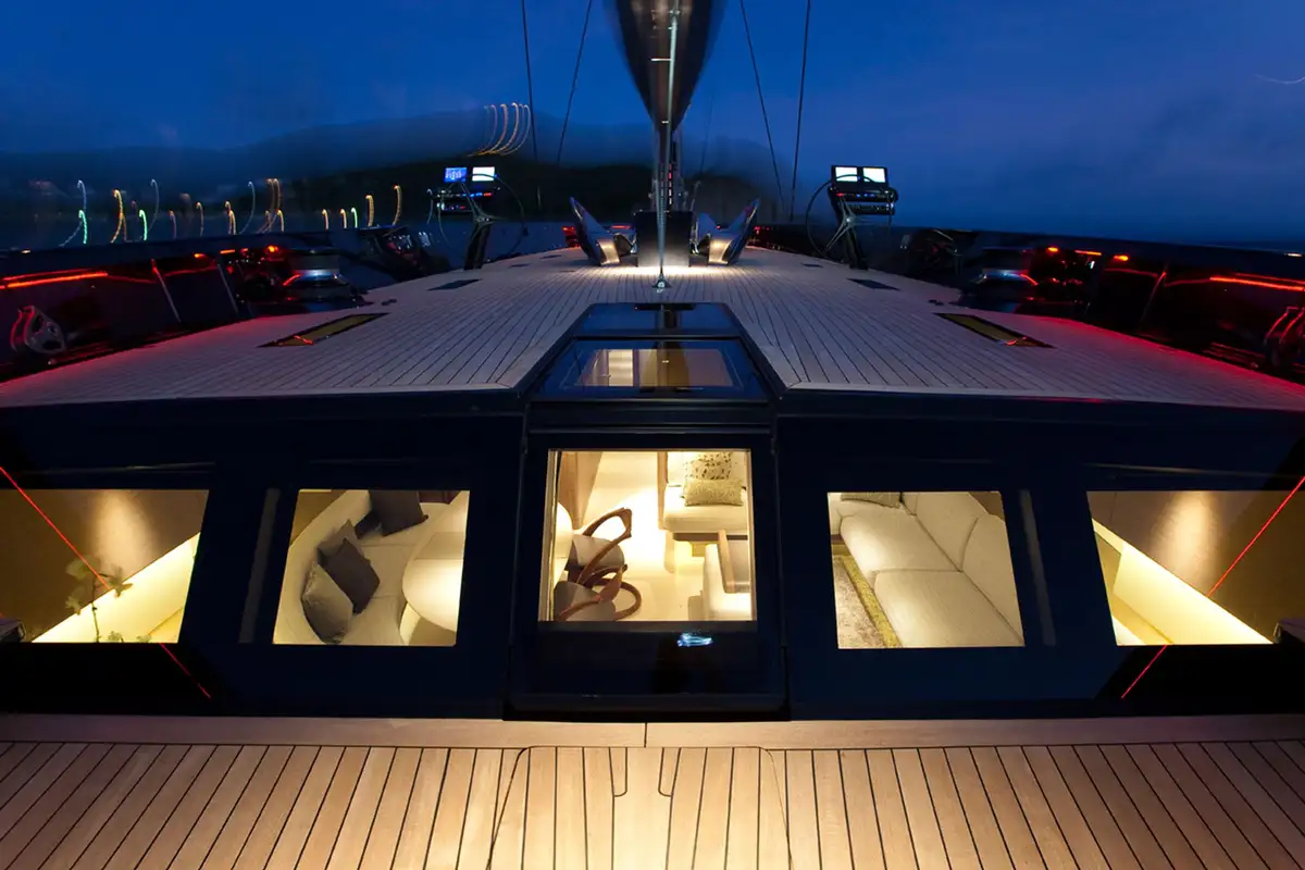 At 39.95m (131’1’’), the Wally 130 Black Sails remains one of the most recognizable sailing yachts launched by the Italian builder. Delivered in 2009, she features naval architecture by Javier Soto Acebal with exterior styling by Amanda Levete. The result is a yacht that stood out both for her striking all-black hull and carbon accents, as well as her focus on performance.