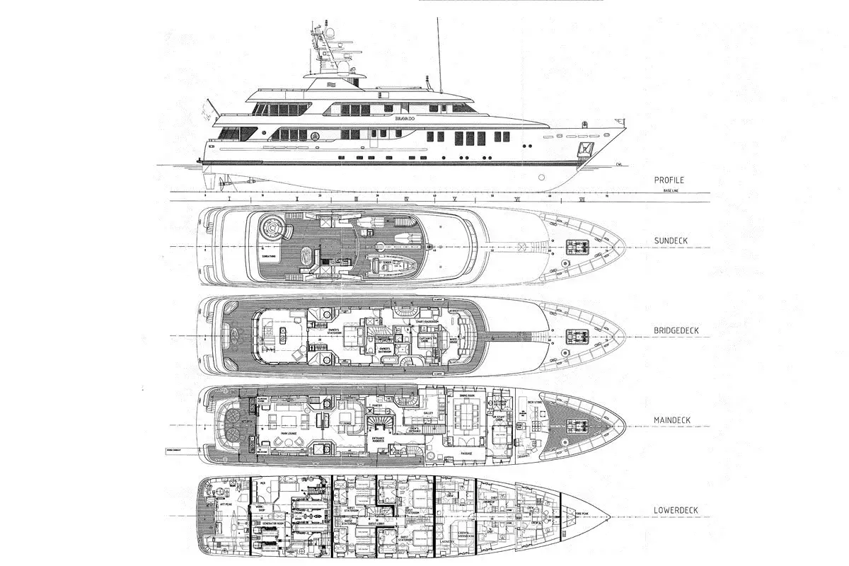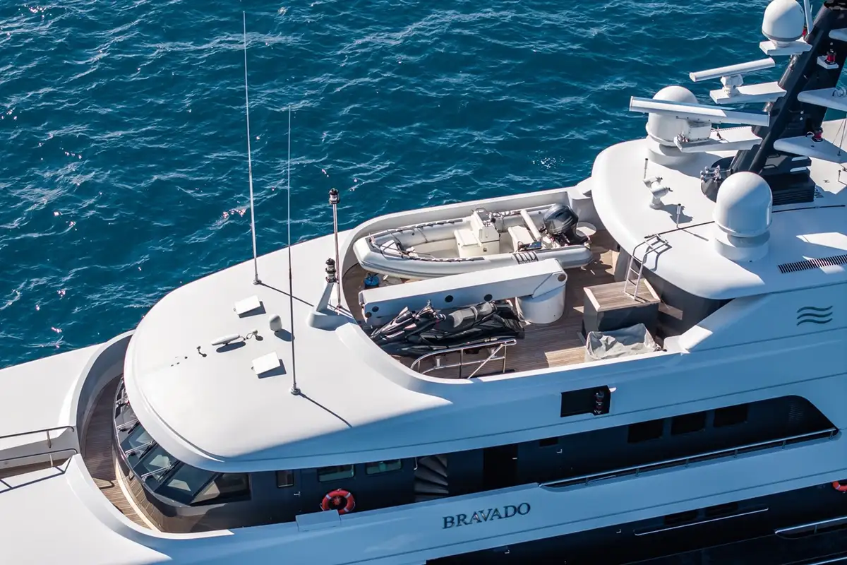 A 45-metre (147ft) full displacement yacht from the renowned German builder Abeking & Rasmussen, BRAVADO was delivered in 2004 and refitted in 2021. She is constructed in steel, to Lloyd’s classification, with aluminium superstructure. Her interior design and exterior styling are by Raymond Langton, with naval architecture by Abetting & Rasmussen’s in-house design office.