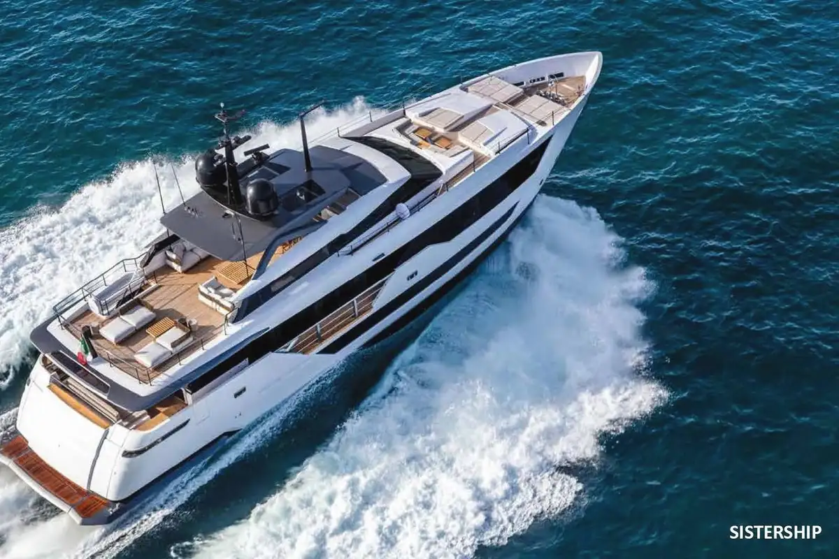 CL106 is a 32.82m (107.7ft) 210GT GRP planning yacht built by Custom Line. Her naval architecture is by Ferretti Group Engineering. Her interior and exterior styling are by Studio Francesco Paszkowski Design. She was built to RINA C + HULL, · MACH, Y, Unrestricted navigation certification.