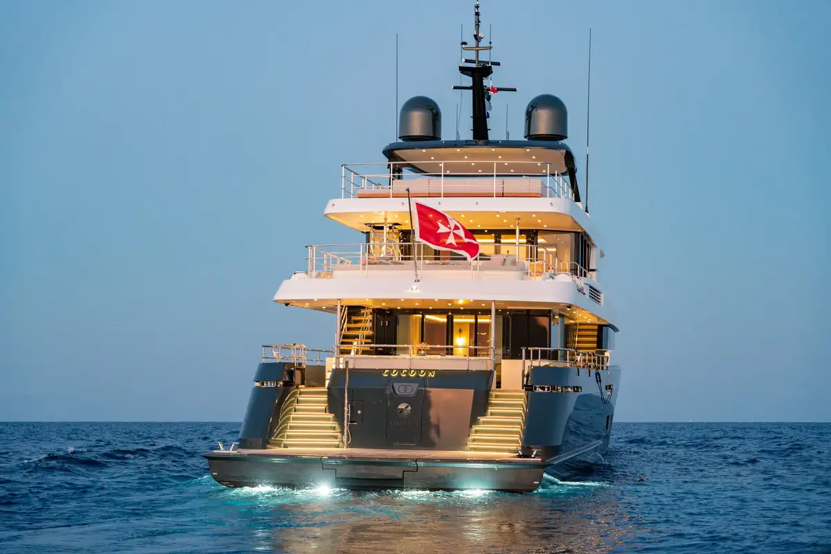 Elegant and sophisticated, COCOON is both an entertainer's dream and an ideal family getaway. With space to accommodate 12 guests and 7 crew, her exterior design focuses on creating the perfect indoor-outdoor connection, with plenty of comfortable seating and dining areas spread over three decks.