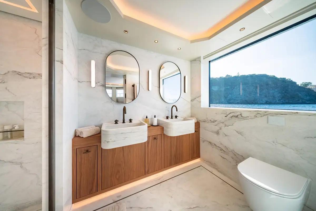 She is powered by twin Caterpillar engines delivering a combined 4,000 horsepower, allowing for a top speed of 16.5 knots and a comfortable cruising speed of 14.5 knots. This exceptional blend of power, performance, and elegance guarantees an unforgettable experience at sea.