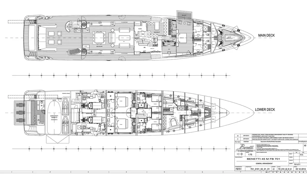 She features a displacement steel hull and aluminium superstructure with teak decks. With a top speed of 15 knots, DOMANI can cruise comfortably at 14 knots. With her wide beam and low draught, she is perfect for cruising around shallow waters