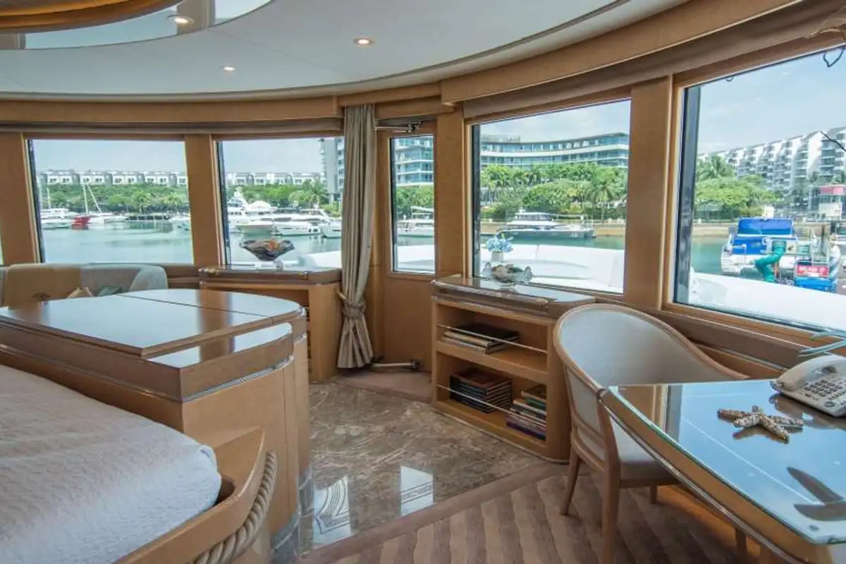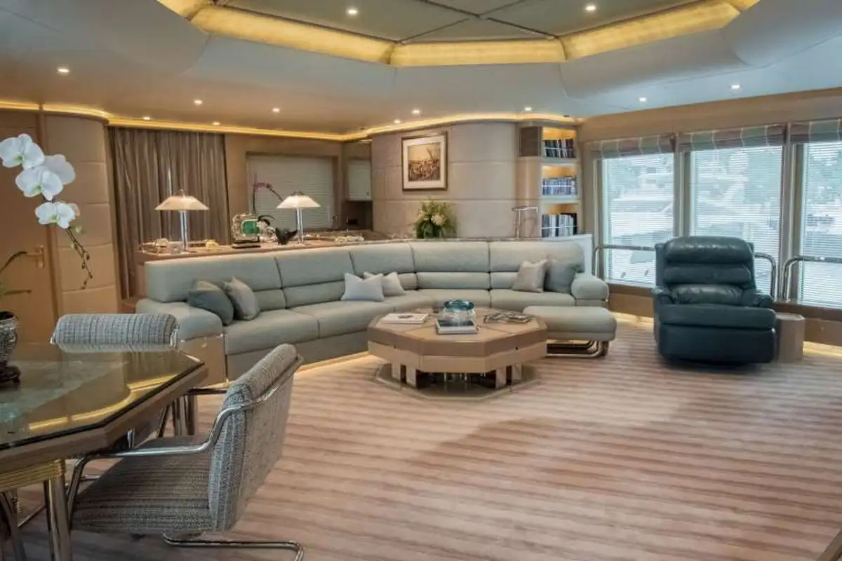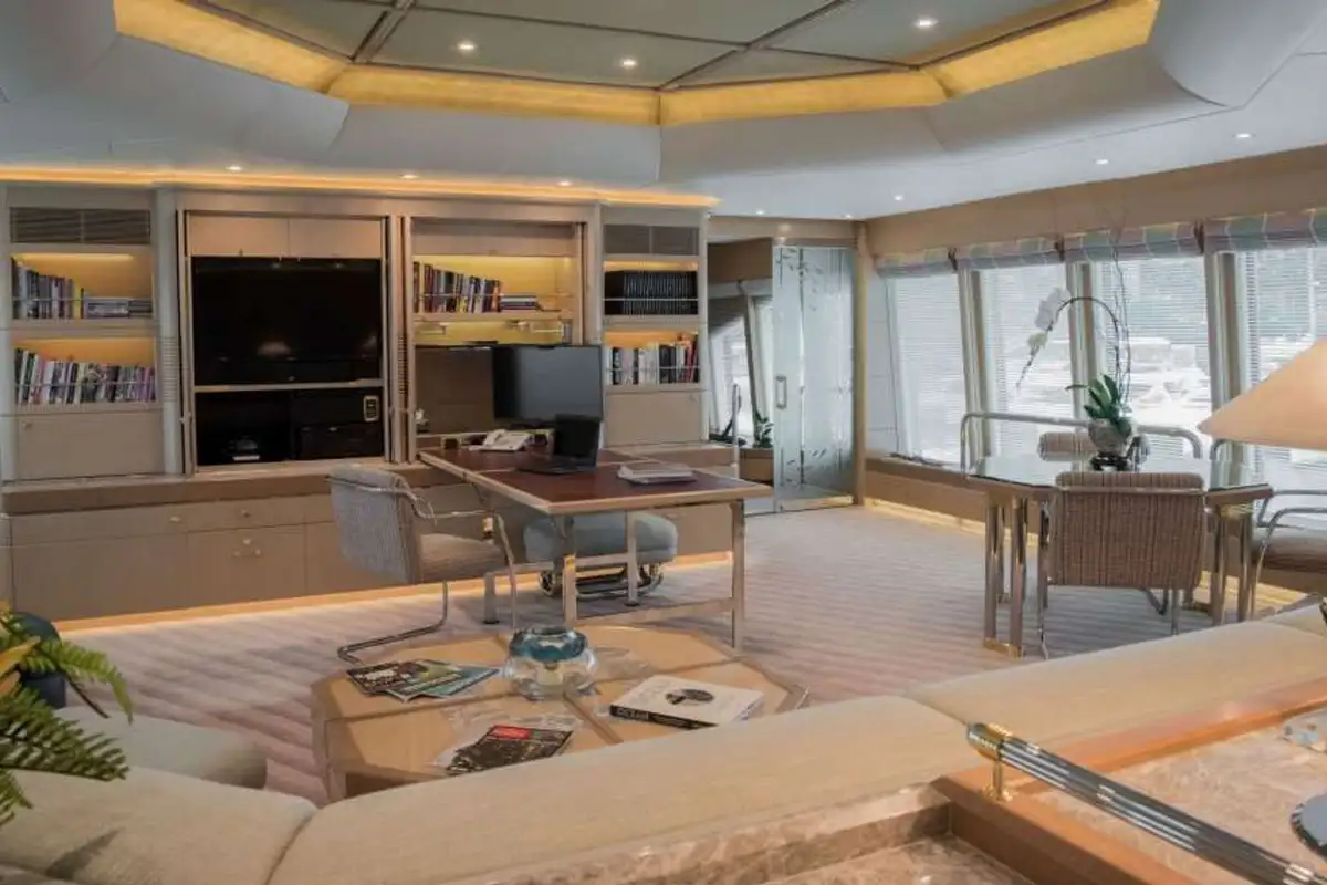Her full beam superstructure maximizes the interior spaces with natural light provided through the large windows designed to blend in nicely in the yacht’s profile.