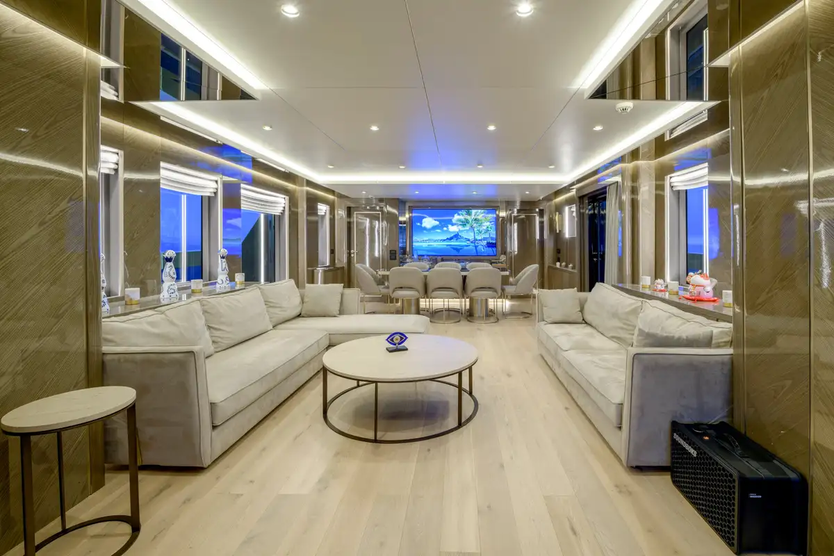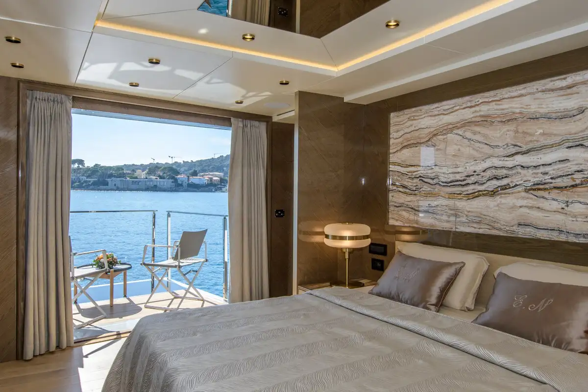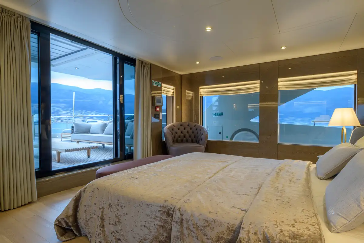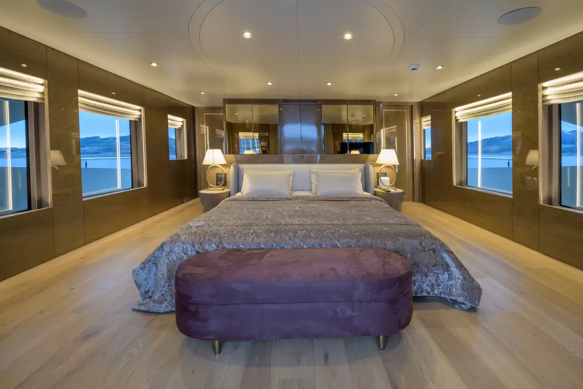 Expansive windows throughout provide panoramic views and fill the interior with natural light, making EBYSHINE a standout choice for long-range cruising in complete comfort and style.