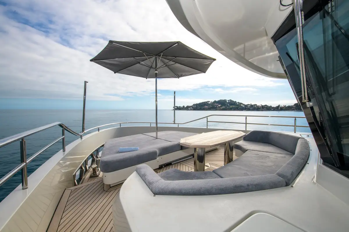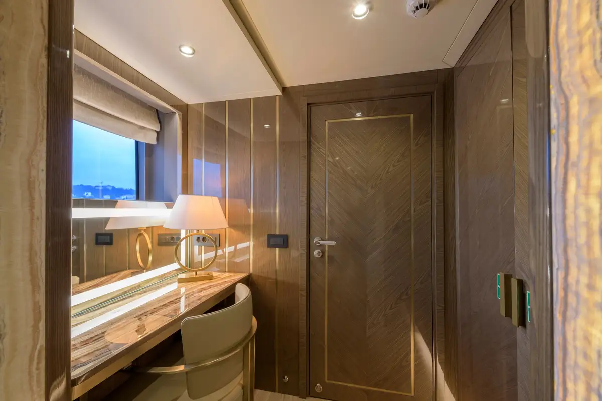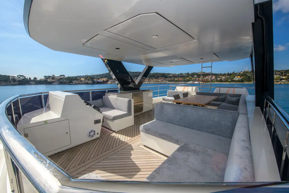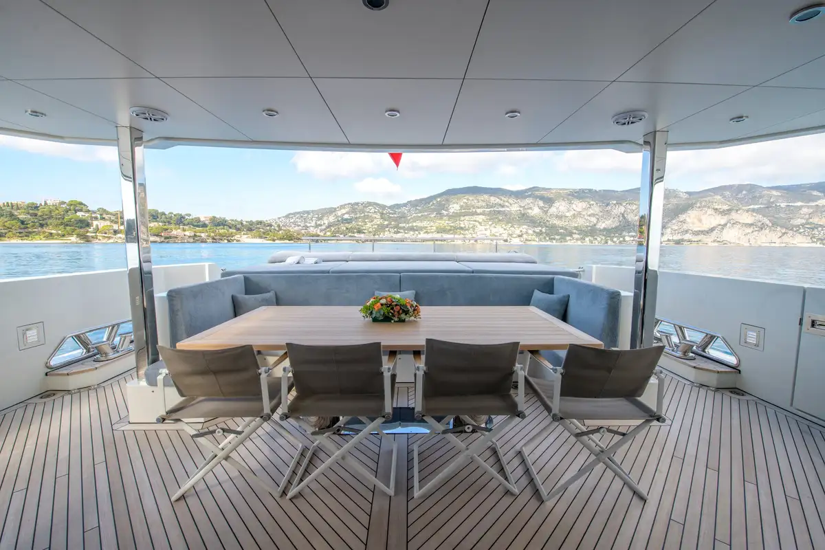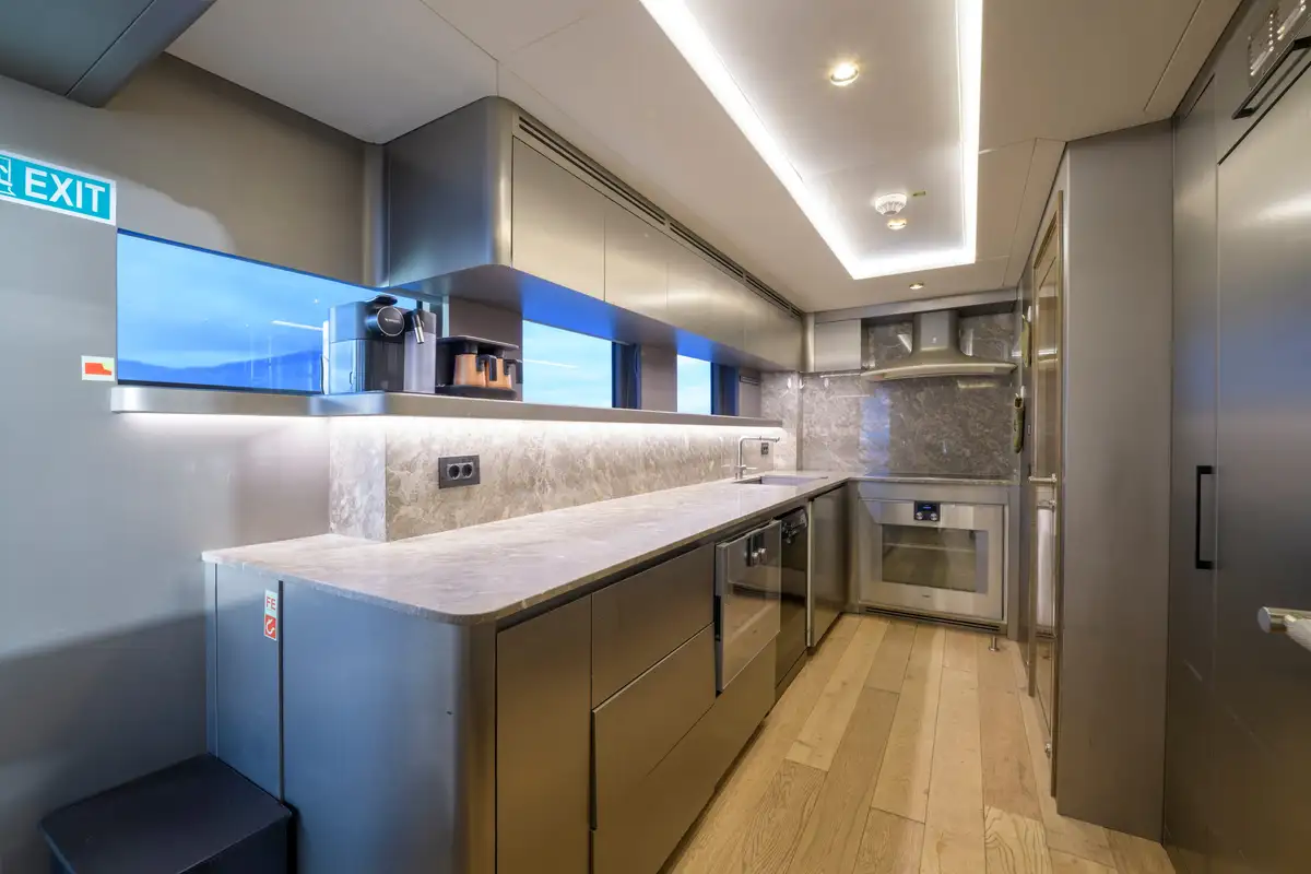 Expansive windows throughout provide panoramic views and fill the interior with natural light, making EBYSHINE a standout choice for long-range cruising in complete comfort and style.