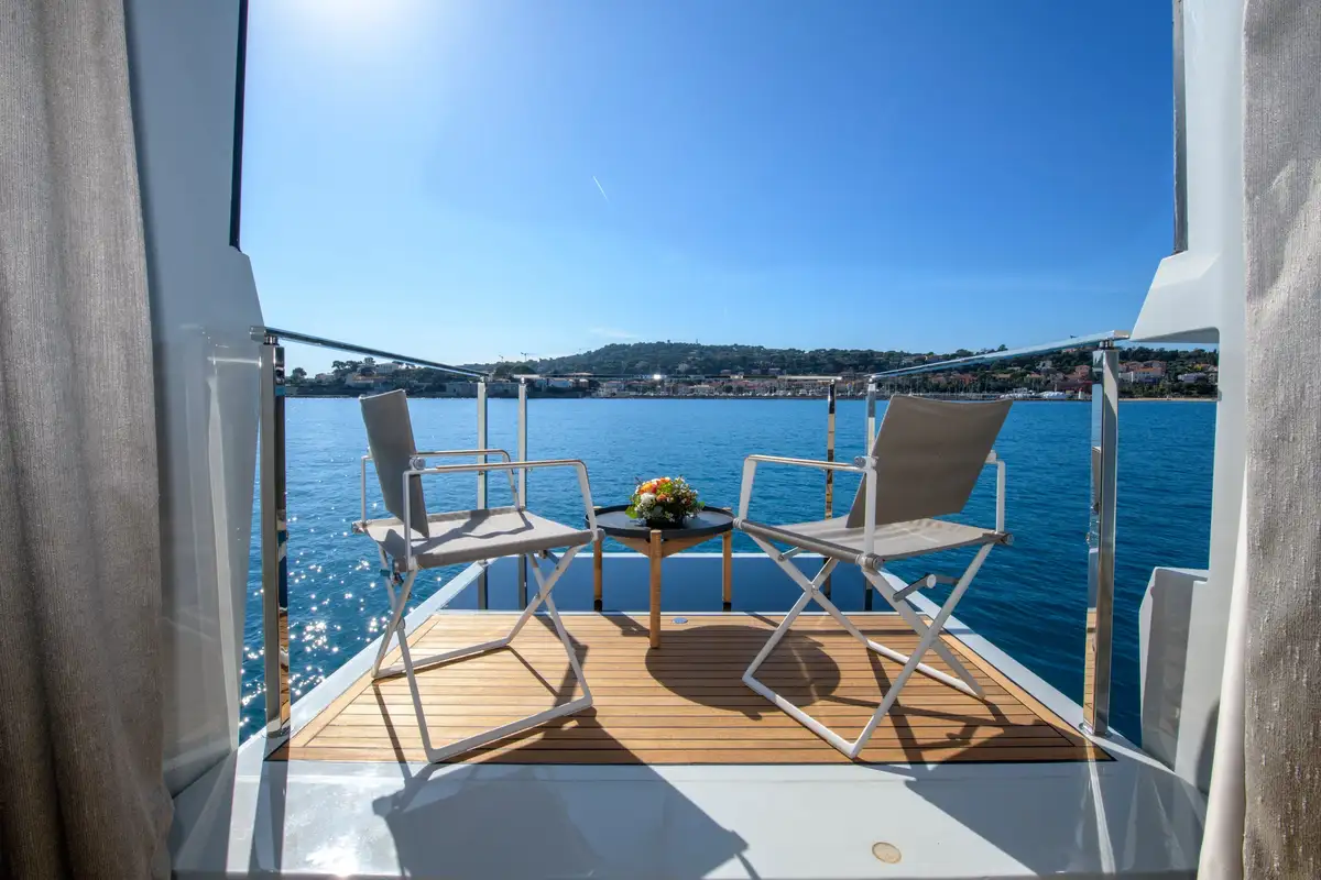 - Fold-down balcony in the main deck master suite