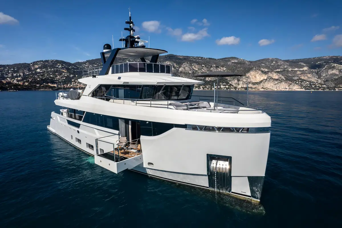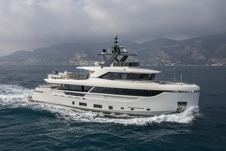 EBYSHINE is a striking 30m (98.4ft) motor yacht delivered in 2023 by the Turkish shipyard Blaundus. As hull #02 of the B30 Series, she features exterior styling and naval architecture by Unique Yacht Design, with interiors custom-crafted by Blaundus Yachts. With an impressive gross tonnage of 219 GT, she offers exceptional volume for her size, setting a new benchmark in the 30-metre class.