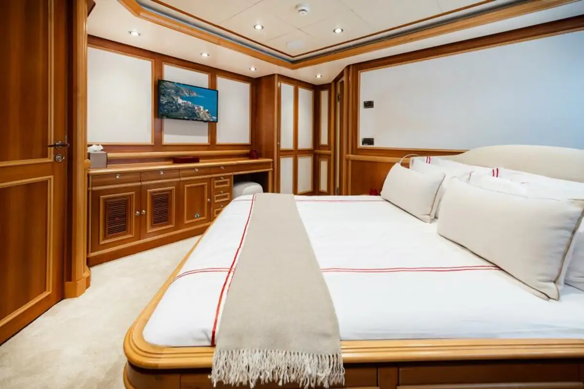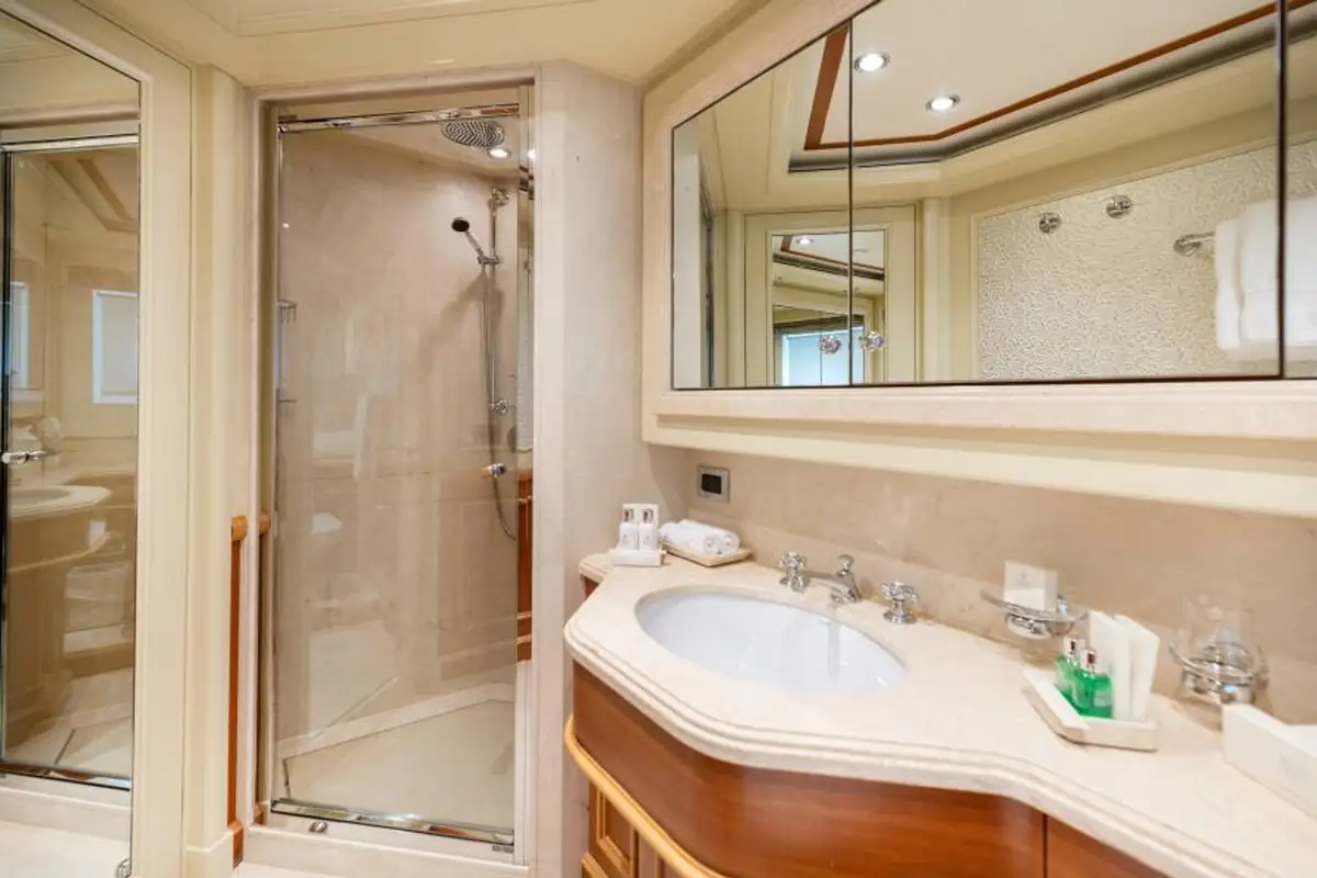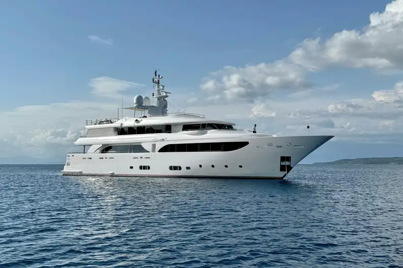 Always meticulously maintained and upgraded, she is fresh from her 15-year class survey. In the last five years she has had a full repaint, all batteries replaced, new generators, AVIT overhaul, her galley refitted, new gym equipment, new carpeting throughout, new foredeck teak decking, new beach club sauna and a host of other technical and cosmetic enhancements.