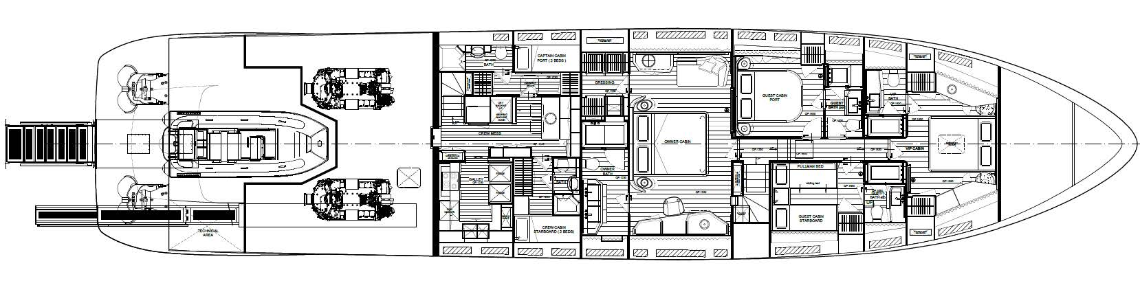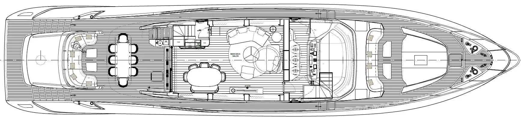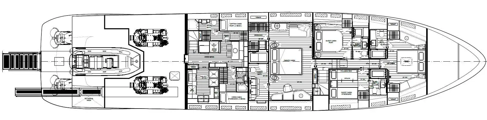 - High-performance motor yacht capable of reaching maximum speeds of 35 knots